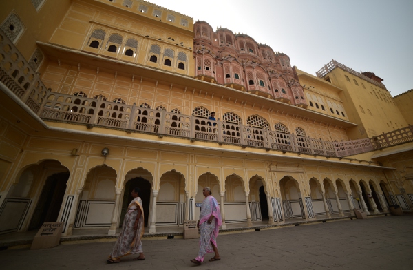 Ce n’est pas un palais au sens traditionnel, mais une façade spectaculaire de grès rose, finement sculptée, qui est devenue le symbole absolu de Jaipur. Construit en 1799 par le maharaja Sawai Pratap Singh, son but était pratique et ingénieux : permettre aux femmes de la famille royale d’observer la vie animée de la rue – les processions, les marchés et la ville – sans être vues, conformément aux strictes règles de la “purdah” (isolement des femmes). Ses 953 fenêtres ajourées (jharokhas) en forme de nid d’abeilles créent une ventilation naturelle, faisant circuler l’air frais à l’intérieur, un système de climatisation naturelle brillant.
