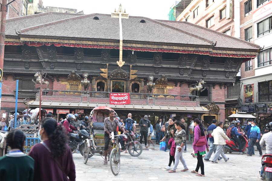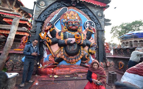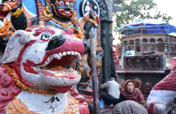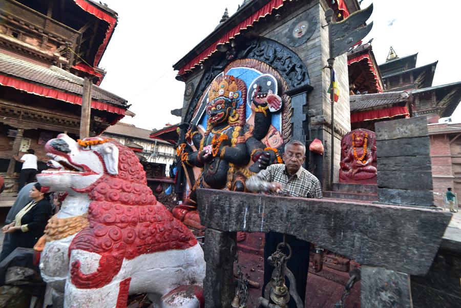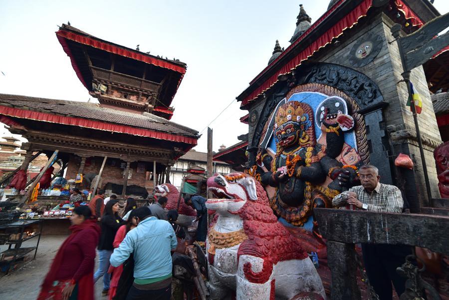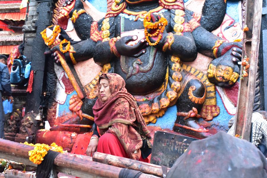 Au cœur de Durbar Square, impossible de passer à côté de la déesse Shiva. Plusieurs temples lui sont d’ailleurs dédiés sur la place, et notamment Nasal Devata.