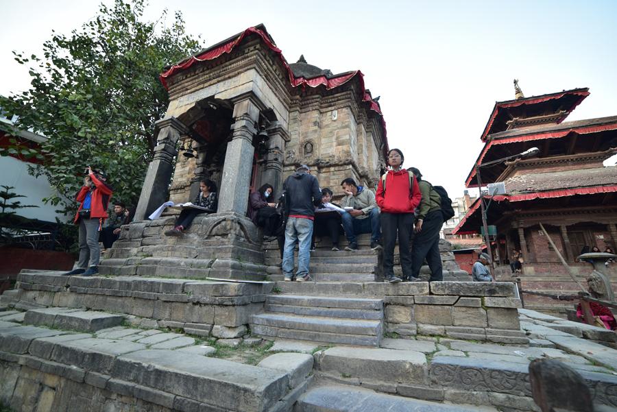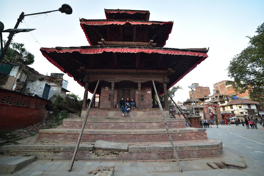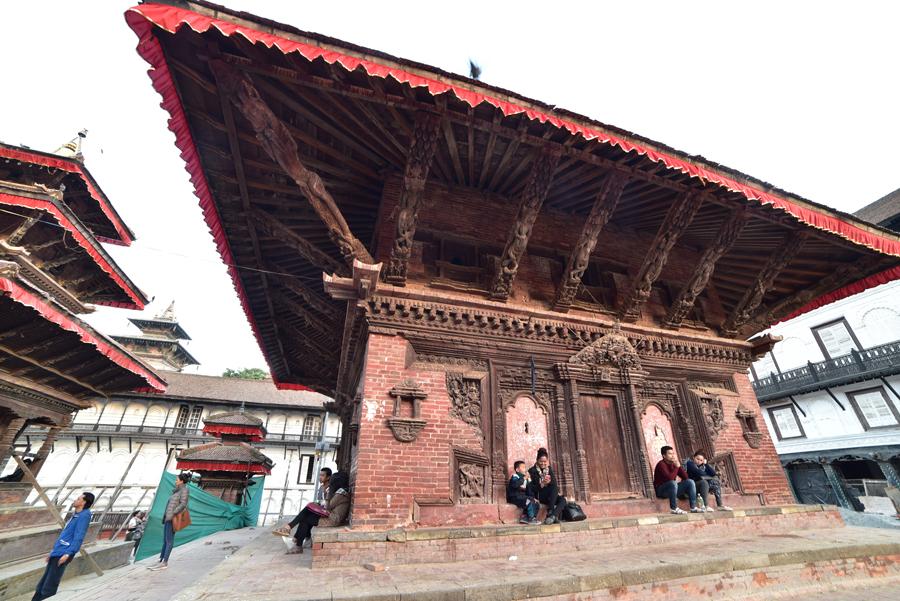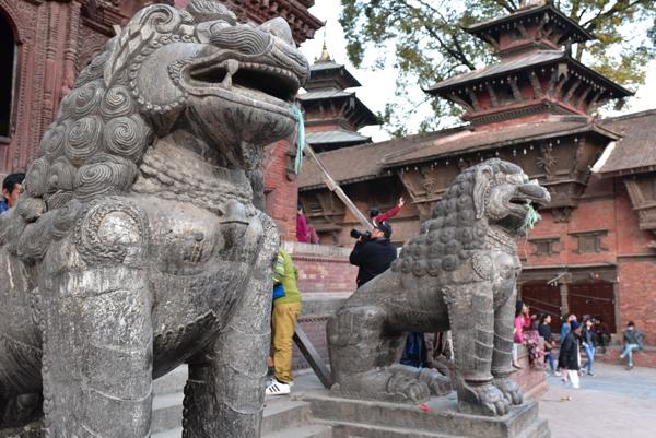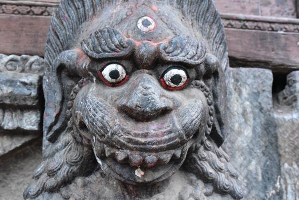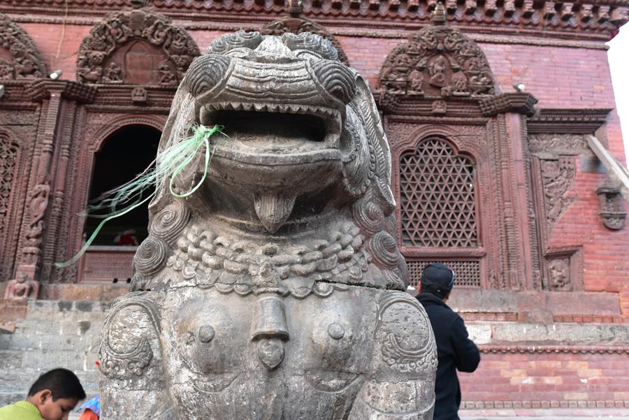 Car le moins que l’on puisse dire est que le séisme a très fortement touché les temples de Durbar Square. Ici, la pierre côtoie désormais les échafaudages. Difficile dans ce contexte de retenir un monument plus qu’un autre. C’est ce que j’ai fait lors de cette visite, laissant surtout mon œil aller vers les détails plutôt que vers des temples pour la plupart défigurés.