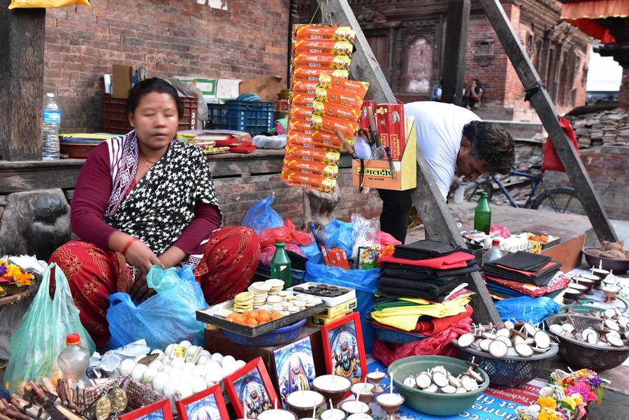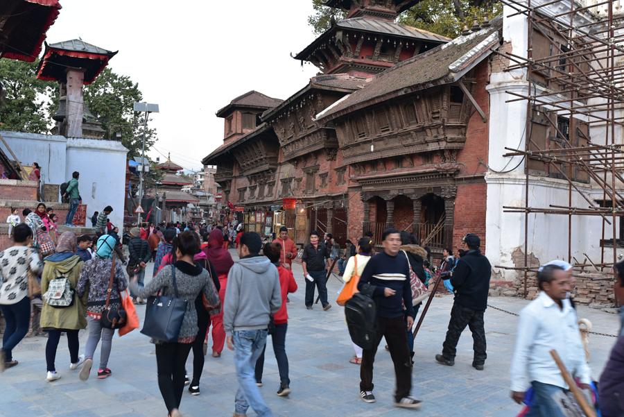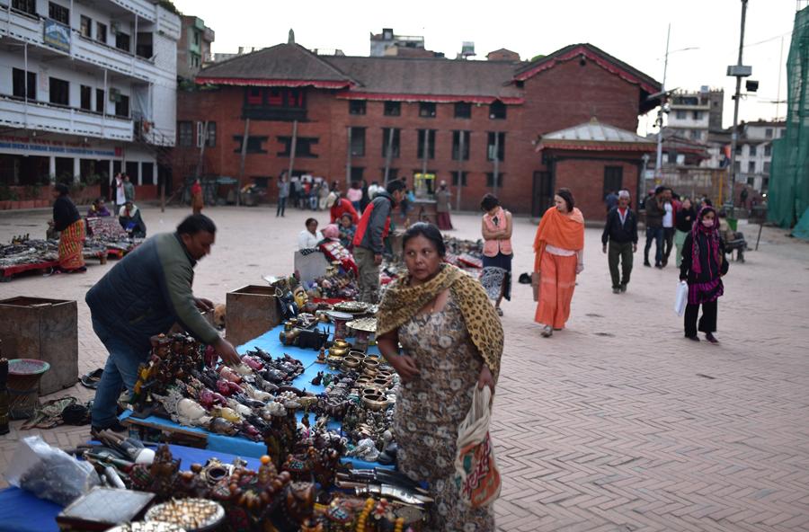 Comme nous avons fait la visite à l’envers, nous achevons notre petit tour du propriétaire par la place Basantapur où se dresse un immense marché de bibelots et de souvenirs. Ici se dressait autrefois le parking des éléphants royaux.