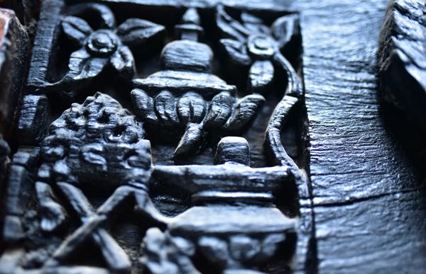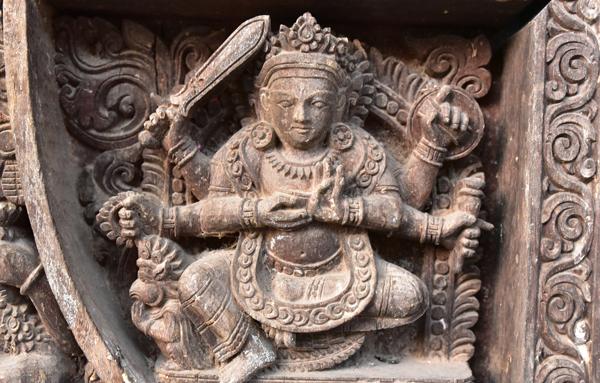 Plus que l’architecture de ses temples, la véritable beauté de Durbar Square réside dans ses détails. Comme ici, ces extraordinaires sculptures en bois.