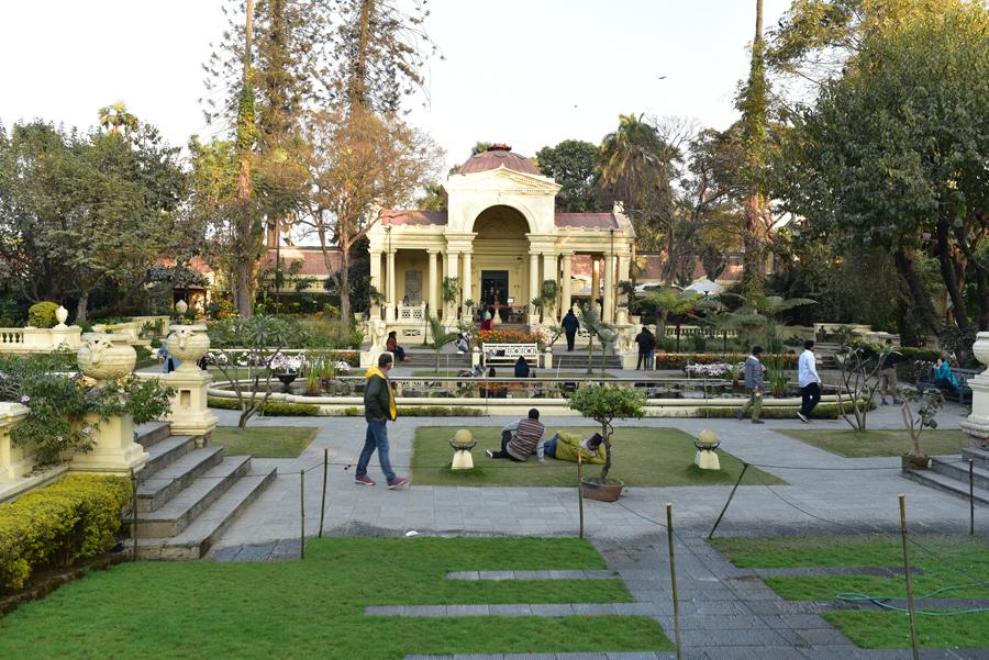 Jeudi 23 novembre. Au retour de Changu Narayan, je propose à Pierre de descendre près de Thamel pour faire un petit détour par les Garden Dreams**, les jardins à l’anglaise imaginé à la fin du XIXe siècle par le premier ministre de l’époque.
