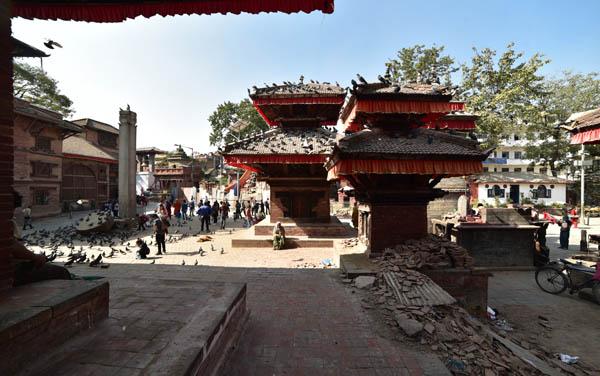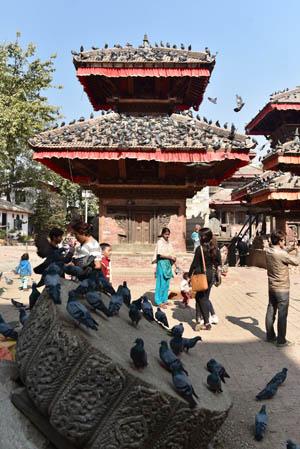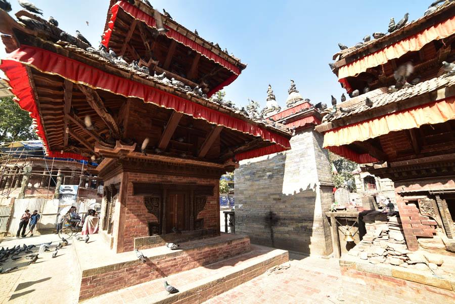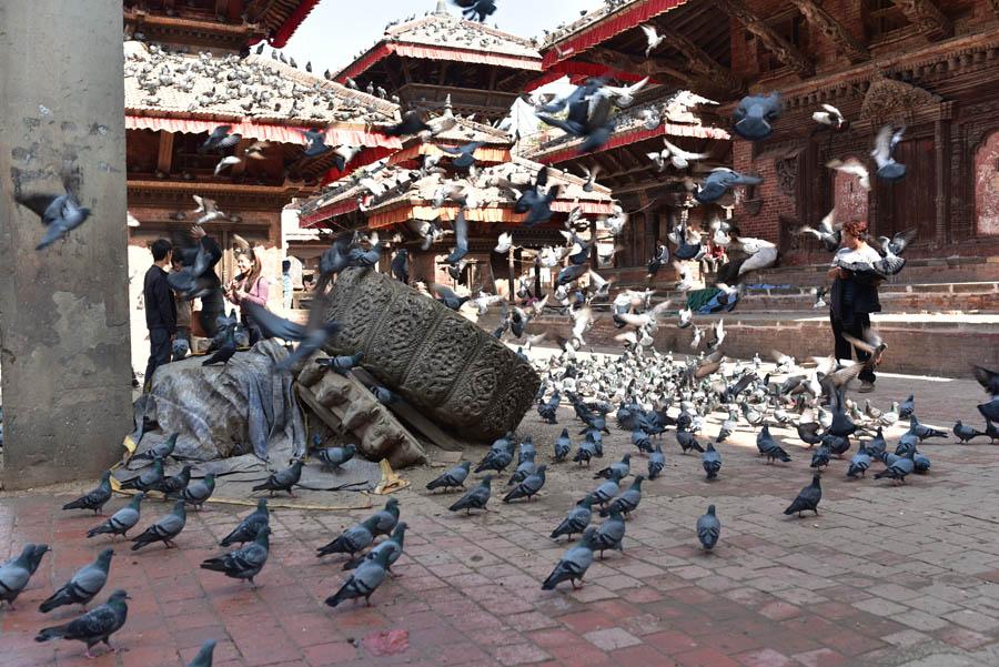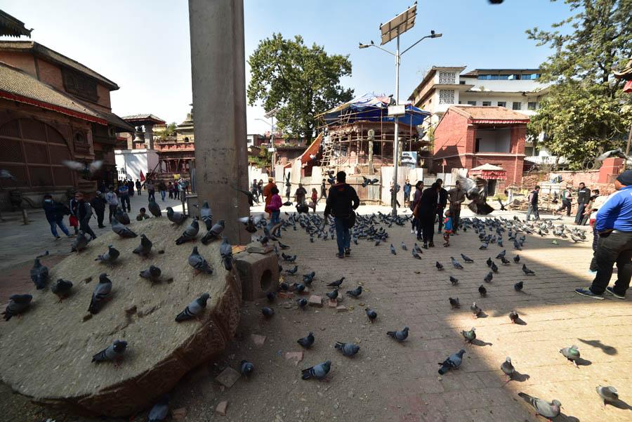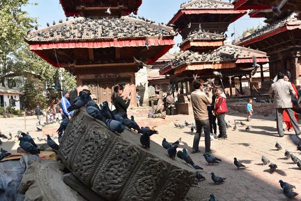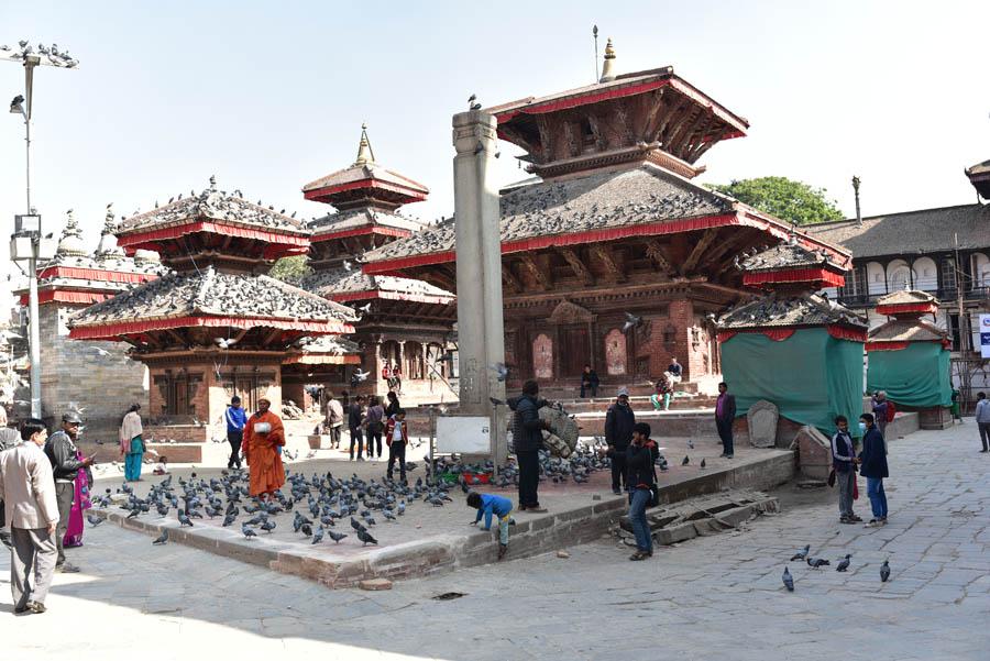 Un peu plus loin, je me place au milieu de plusieurs temples pour réaliser quelques clichés de la place envahie par des milliers de pigeons.