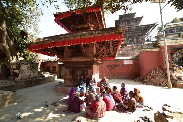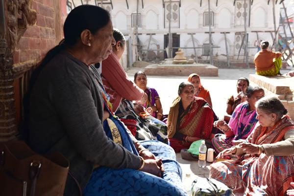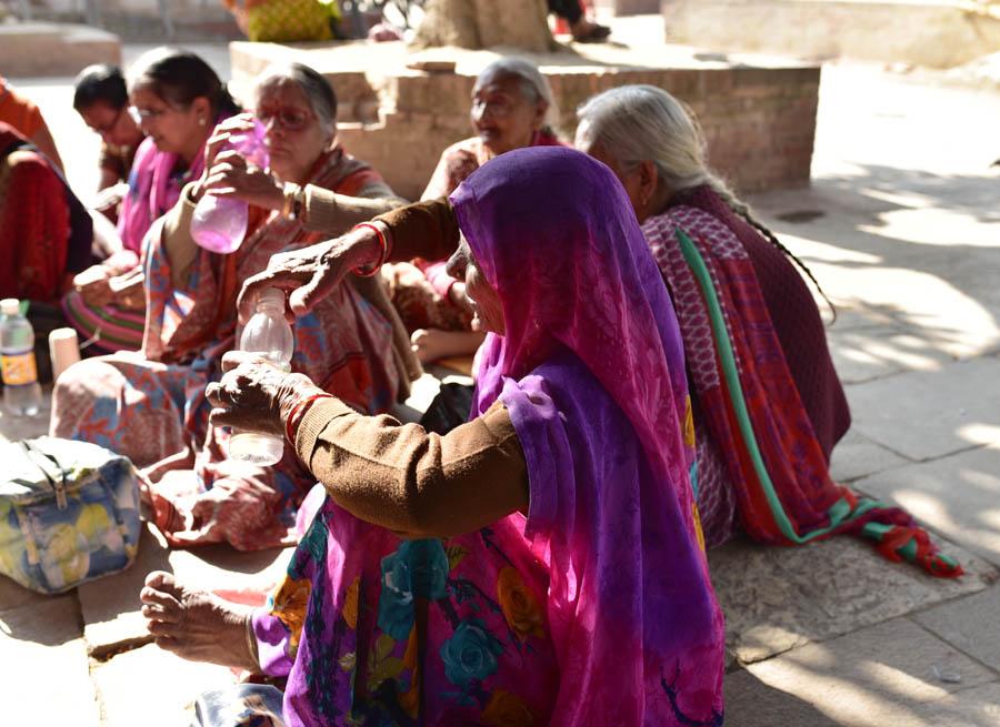 Et puis, il y a aussi toutes ces femmes qui se rassemblent au pied des temples, et parfois même à leur sommet pour travailles ensemble des tissus, des tapis et autres broderies.
