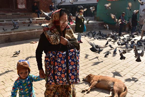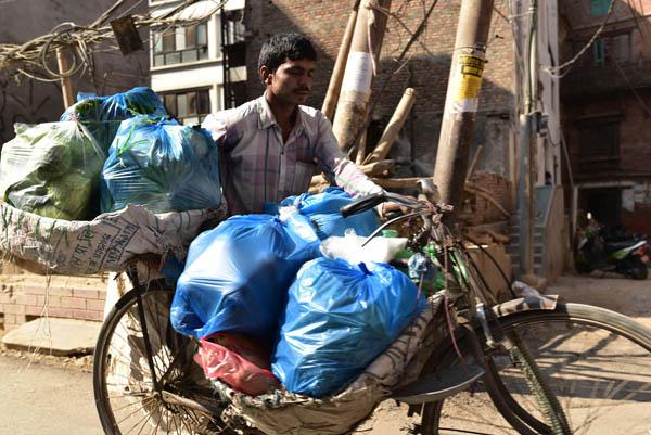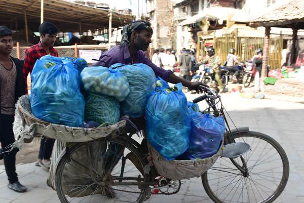 Au cours de cette matinée, je profiterai encore de ma présence dans les rues de Katmandou pour compléter ma collection de portraits et de scènes de rue. Comme ces vendeurs de légumes qui transportent leurs marchandises sur des vélos surchargés.