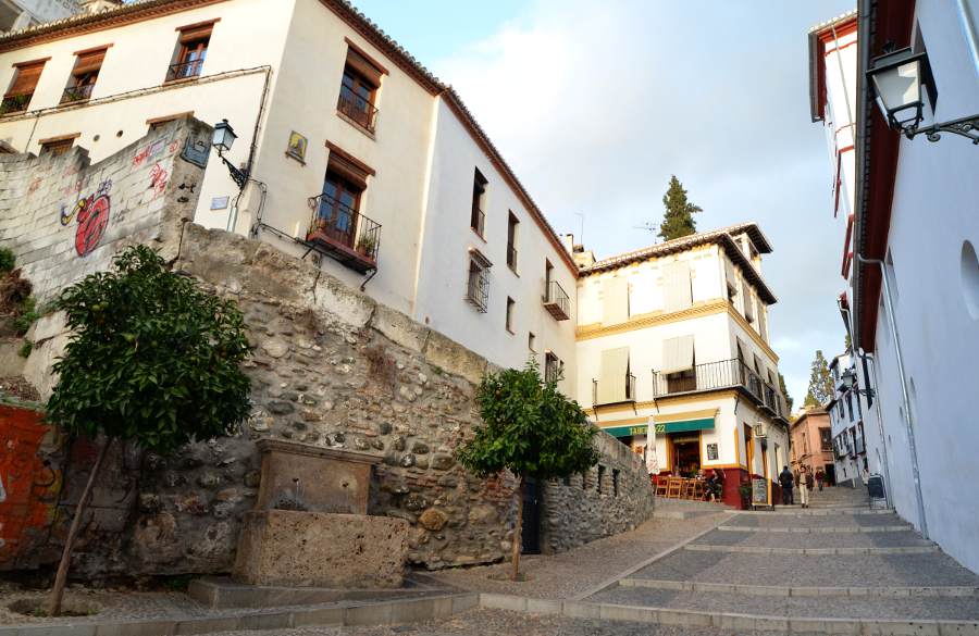 Le quartier est un palimpseste d’architectures successives. On y découvre d’anciens bains arabes (El Bañuelo), des églises mudéjares construites sur d’anciennes mosquées (comme l’église de San Salvador), et le monastère de Santa Isabel la Real. La médersa royale et les nombreux aljibes (citernes) publiques rappellent la vie quotidienne à l’époque médiévale. Chaque rue et chaque placette recèle un détail historique.