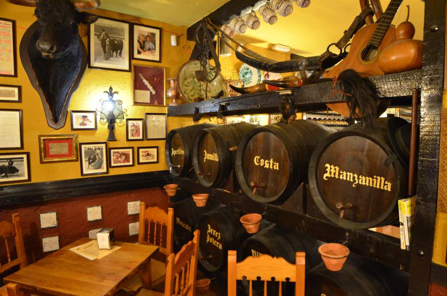 La journée tire à sa fin. Après une bonne petite pause à mon hôtel, je file à deux pas de là, manger un bout à la Posada del Duende, réputée pour sa cuisine traditionnelle andalouse. Un vrai régal. Le décor (un peu chargé) rappelle combien l’Andalousie reste attachée à la tauromachie… Patron très sympa. À ne pas manquer le vinho de la casa.