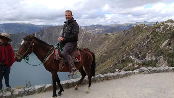 Après une petite heure passée au fond du cratère, il est grand temps de remonter. Le mal de tête est de plus en plus présent. Du coup, je n’hésite pas une seconde et demande à Clinton de nous commander une mule pour remonter sans effort. Ici, on est quand même loin des chemins escarpés du canyon de Colca, au Pérou, du coup, la remontée se fera sans aucun risque de chute. Vamos !