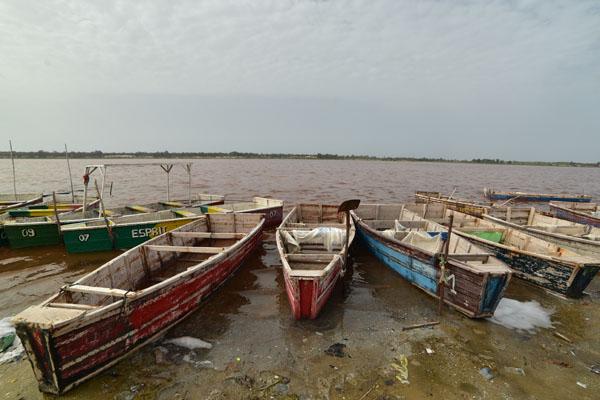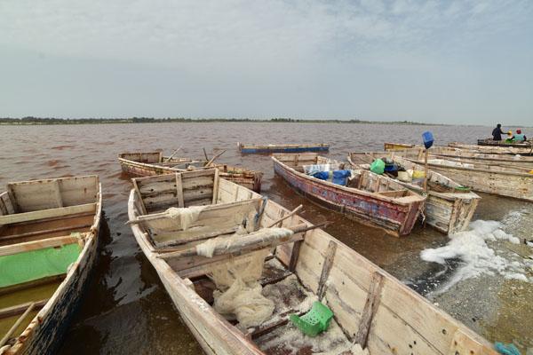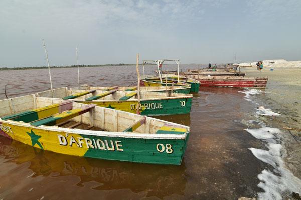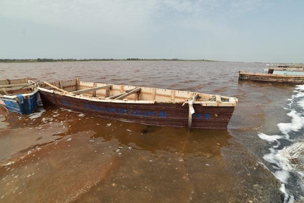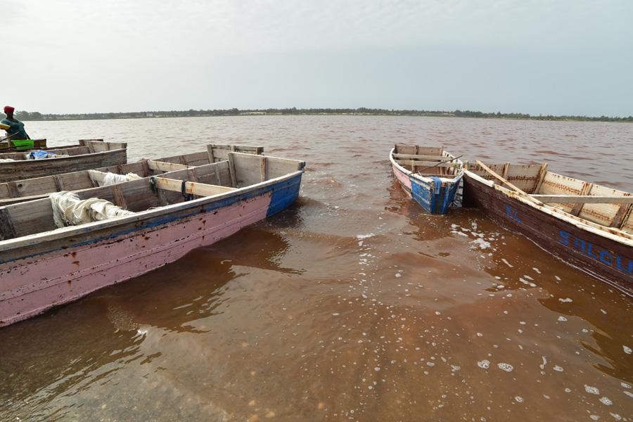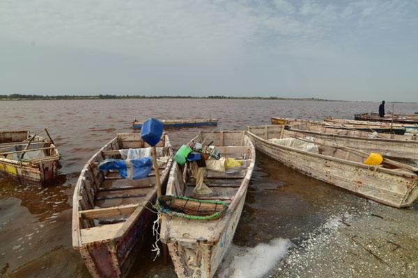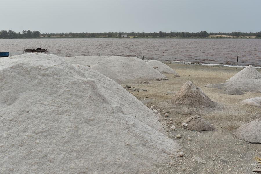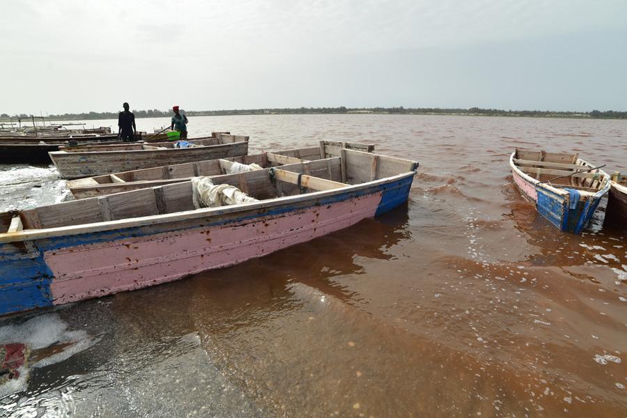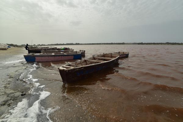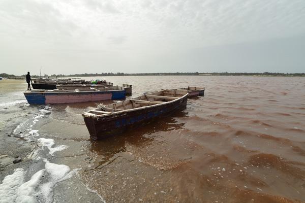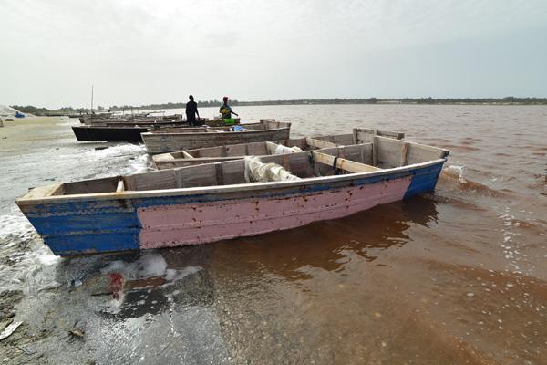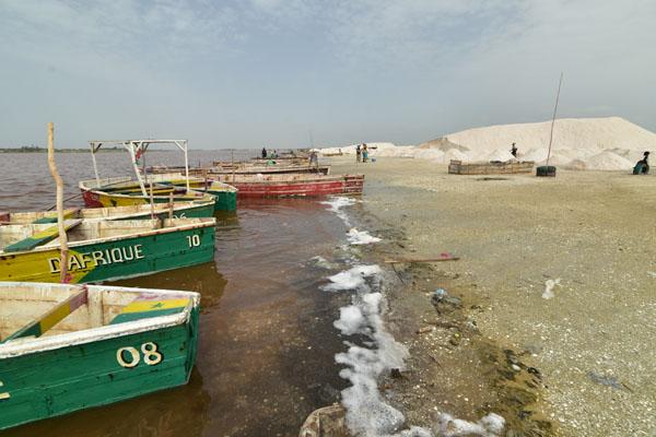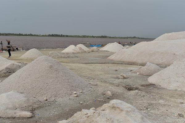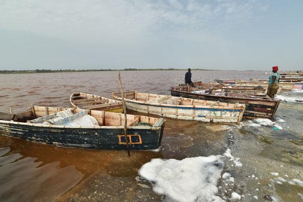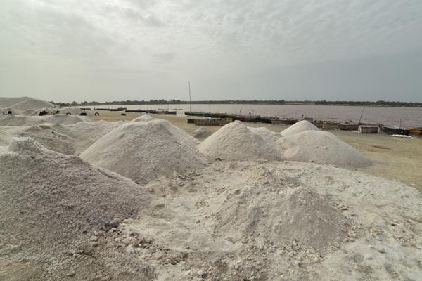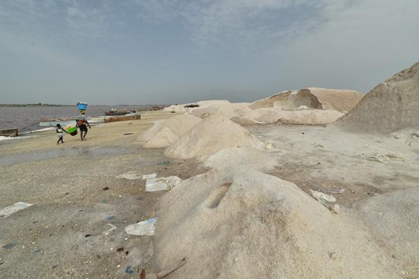 Pour la plupart, les ramasseurs de sel sont des Maliens ou des Guinéens, venus chercher là, sur les rives du lac Rose, un moyen de subsistance. Ces forçats du sel s’enduisent le corps de beurre de karité et se tiennent dans l’eau jusqu’à mi-corps, un tamis autour du cou.
