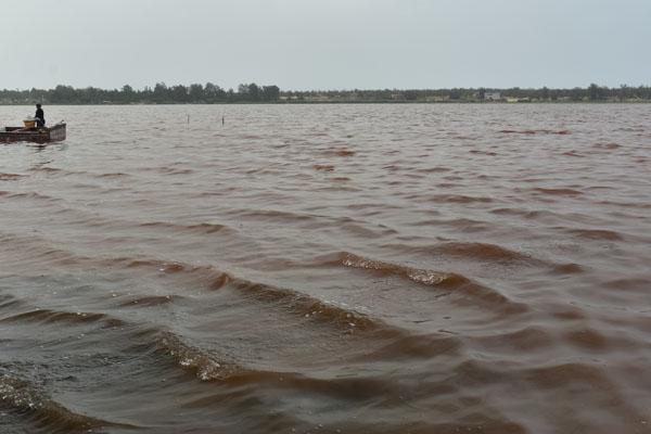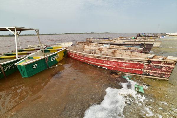 En s’approchant au plus près du rivage et des bateaux qui exploitent le site, on s’aperçoit plus encore de la couleur rose du lac. Des paquets d’écume blanche, mélange de sel et de mousse, blanchissent le rivage.
