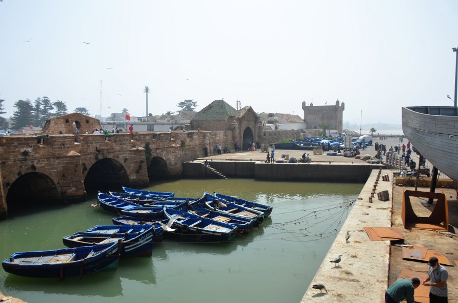 Si vous souhaitez vraiment ressentir le cœur battant d’Essaouira, il vous faudra vous rendre au port et au chantier naval. C’est ici que vous comprendrez le lien qui unit la ville portuaire à la mer, à la pêche et au grand large. Depuis les quais, observez le ballet des bateaux qui rentrent au petit matin d’une longue nuit de pêche ou bien attardez-vous près du chantier naval pour regarder les ouvriers du port rafistoler les vieilles carcasses des grands chalutiers, Sur les quais encore, vous pourrez observer les criées improvisées quand il reste encore un peu de poissons à vendre après la criée du matin.