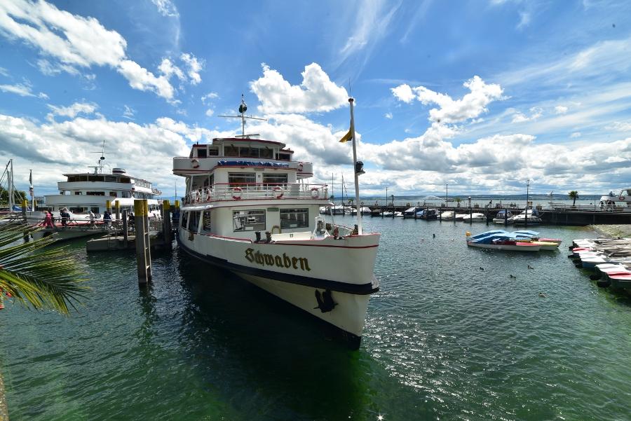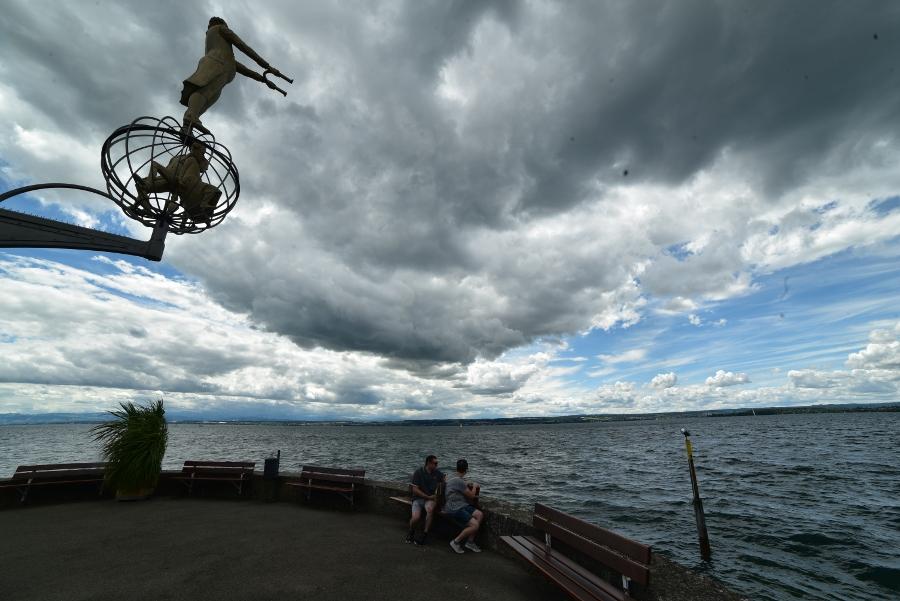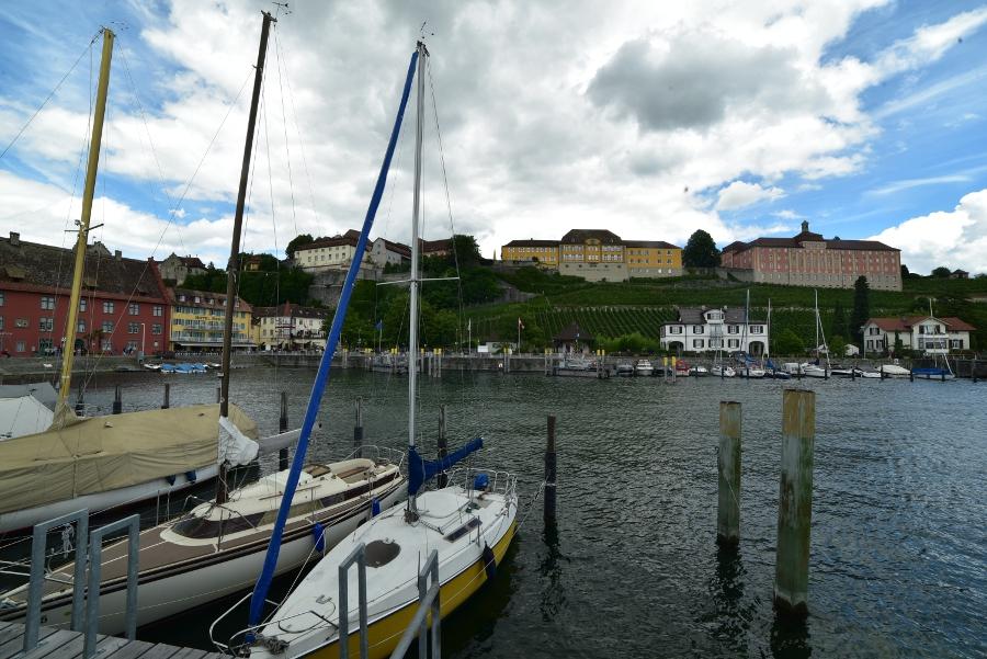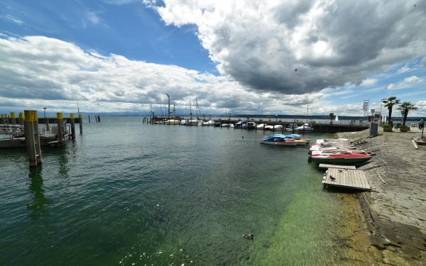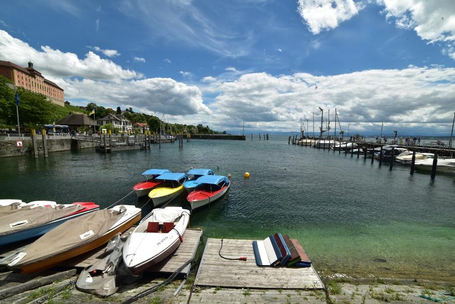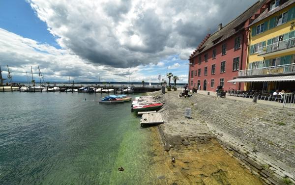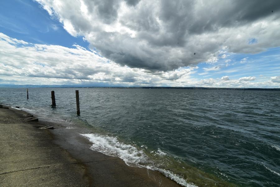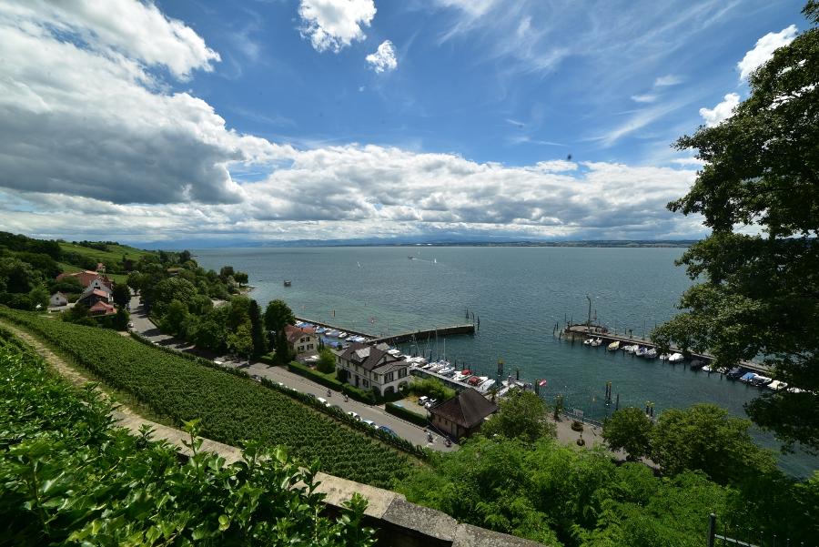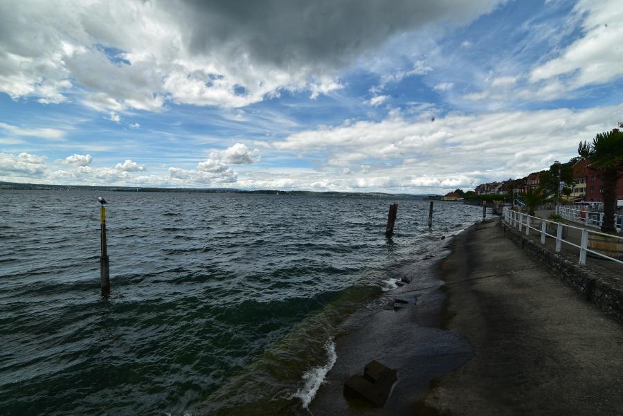 Au bas du petit sentier, ma voilà arrivé directement au port de Meersburg. L’occasion de prendre quelques jolis clichés du lac, du ciel tourmenté qui le domine et des embarcations.