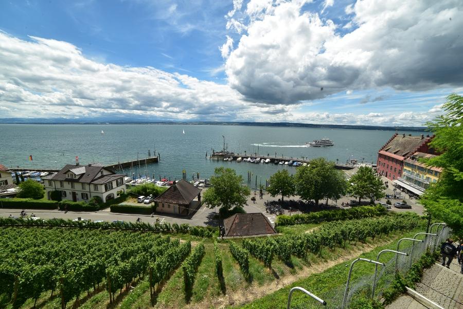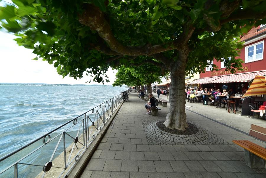 Une petite heure plus tard, je peux déjà contempler les eaux bleues du plus grand lac d’Allemagne fréquentée par une nuée de touristes dès les premiers beaux jours. Il est vrai que le climat est ici idéal. Creusé lors de la dernière glaciation, le lac se divise entre un lac supérieur entre Bregenz en Autriche et Constance en Allemagne.