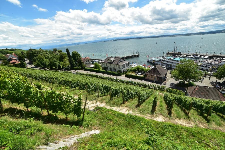 Pour accéder à la ville basse, il faut emprunter un petit sentier qui contourne le château baroque et serpente au milieu des vignes. Très pittoresque. Le lien étroit de la ville avec la nature, le lac et son environnement naturel fait tout le charme de Meersburg.