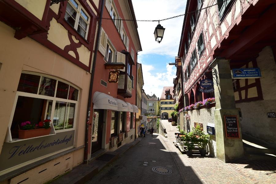 Meersburg possède une ville basse, nichée sur les rives du lac, et une ville haute calfeutrée bien au chaud au milieu de son vignoble. C’est d’abord celle-ci que je visite en premier. Le temps de se garer dans un petit parking extérieur à la cité historique (coup de chance !) et je pénètre dans la ville haute.