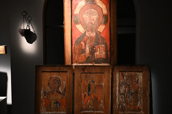 On peut ainsi y admirer l’icône du Sauveur du Xe siècle, des icônes de la première moitié du XIe siècle, notamment celles du Christ intronisé et de saint Georges d’Asan, des Quarante martyrs du XIIe siècle celle de la Crucifixion, de Marie, la mère de Jésus des IXe-Xe siècle et autres objets rituels, des instruments d’écriture des IXe-XIVe siècle.