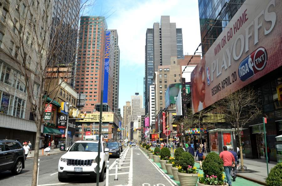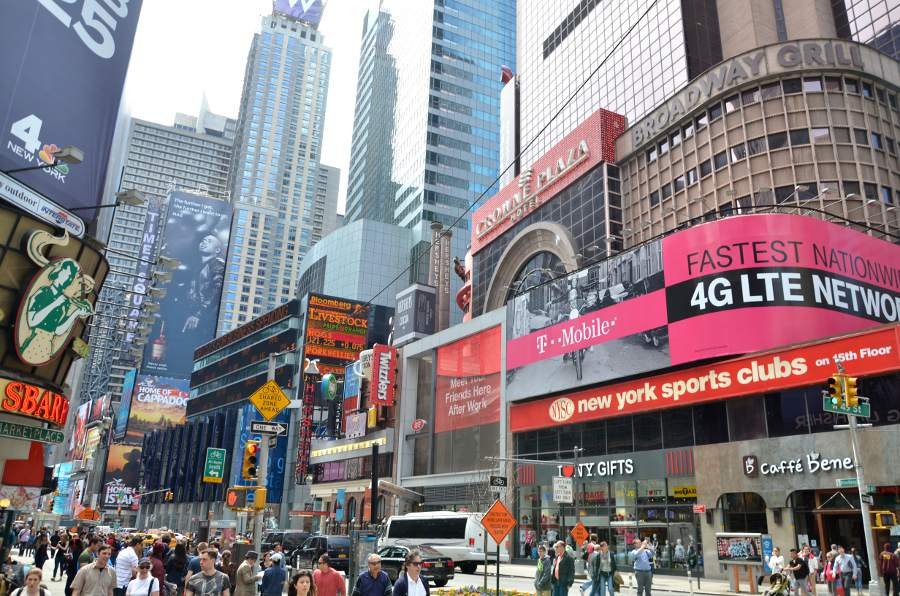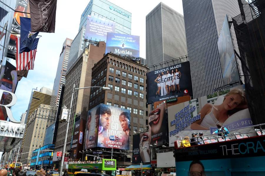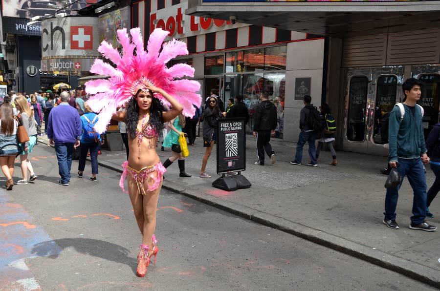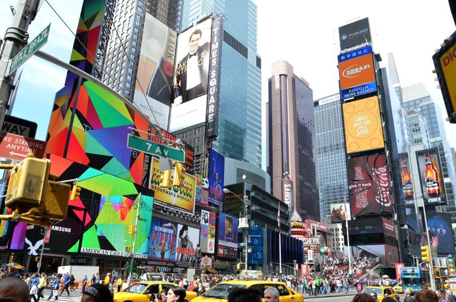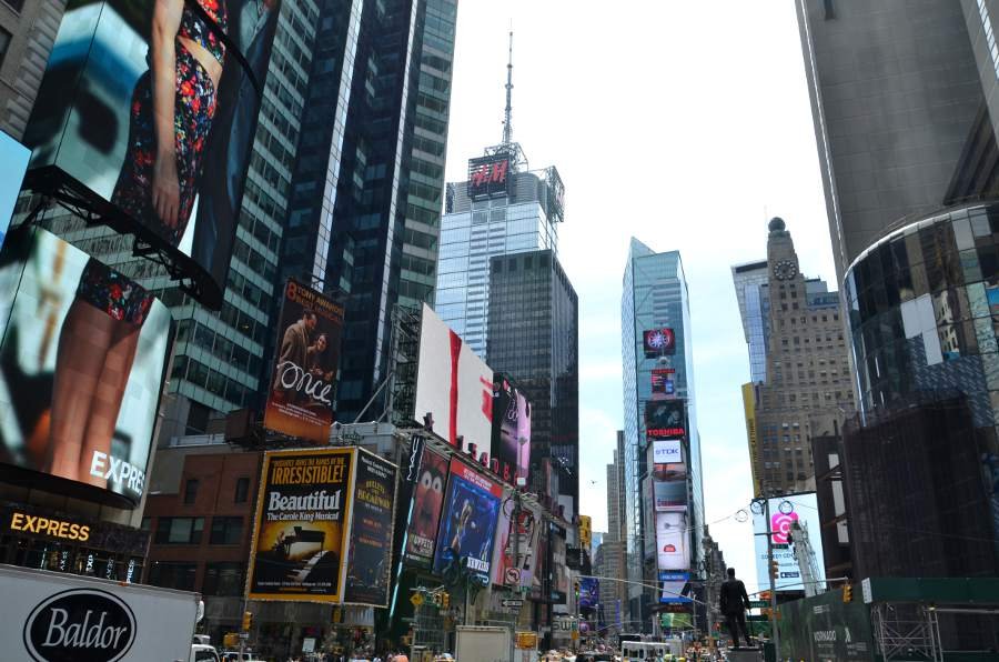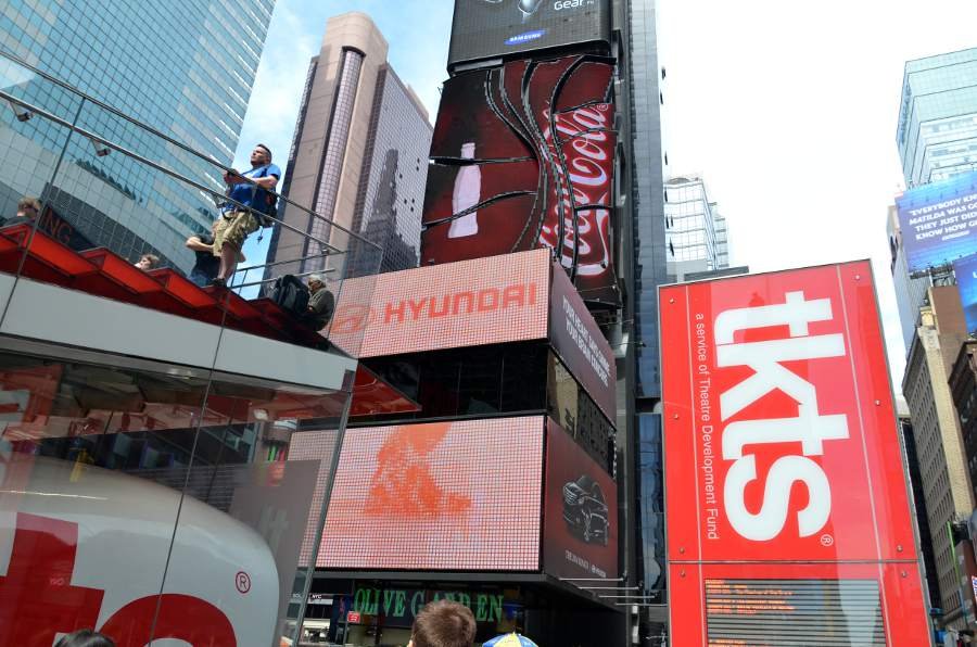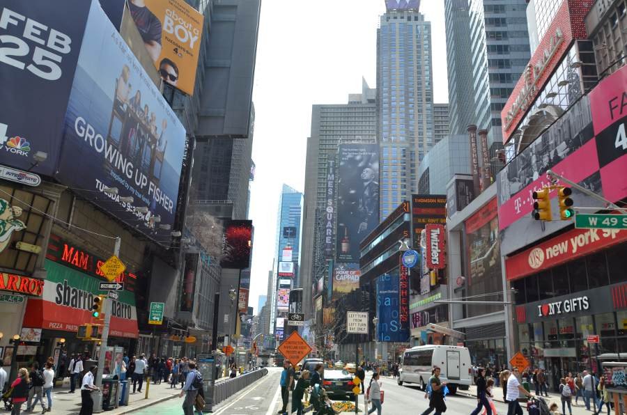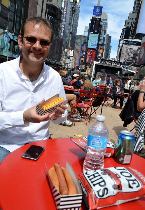 Samedi 12 avril. Après Broadway et Chicago, retour à Times Square pour manger un hot-dog et des chips au milieu de la foule. Ici, on est bien au cœur de la Grosse Pomme, ça fourmille de partout ! Des figurants arpentent jour et nuit les trottoirs. Les super-héros de Marvel côtoient les stars des dessins animés. Il y a même une cow-girl qui gratte deux accords de guitare avant de pousser un cri de bête !