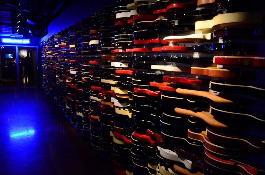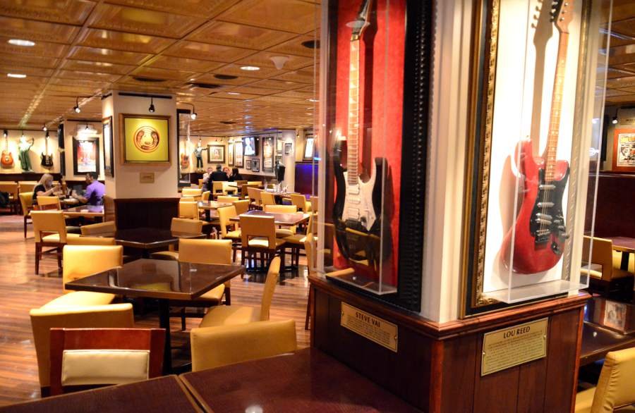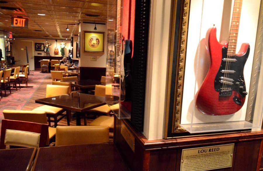 Encore un petit tour sur Times Square, histoire de lécher les vitrines, de loucher sur la sortie des théâtres et des comédies musicales et de faire un peu de shopping, puis on va dans les entrailles du Hard Rock Café. Passage obligé, of course. Collection monumentale de guitares et de disques d’or. Wouah !