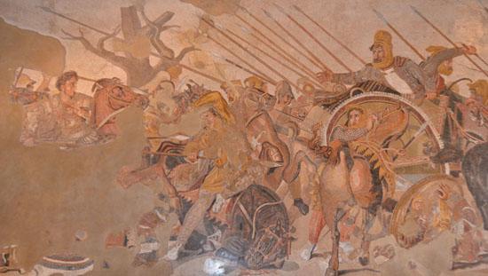 C’est dans cette collection des mosaïques que l’on trouve une autre des pièces majeures du musée : la Bataille d’Alexandre, une des plus célèbres de l’Antiquité. Retrouvée en 1831 dans la Maison du Faune à Pompéi, elle est composée d’environ un million de pièces (tesselles), soit 15 à 30 pièces par centimètre carré ! Longue de 5 m pour 3 m de large, elle représente la phase décisive où Alexandre remporte la victoire sur Darius, en 333 av. J.-C., à Issos. Magique.