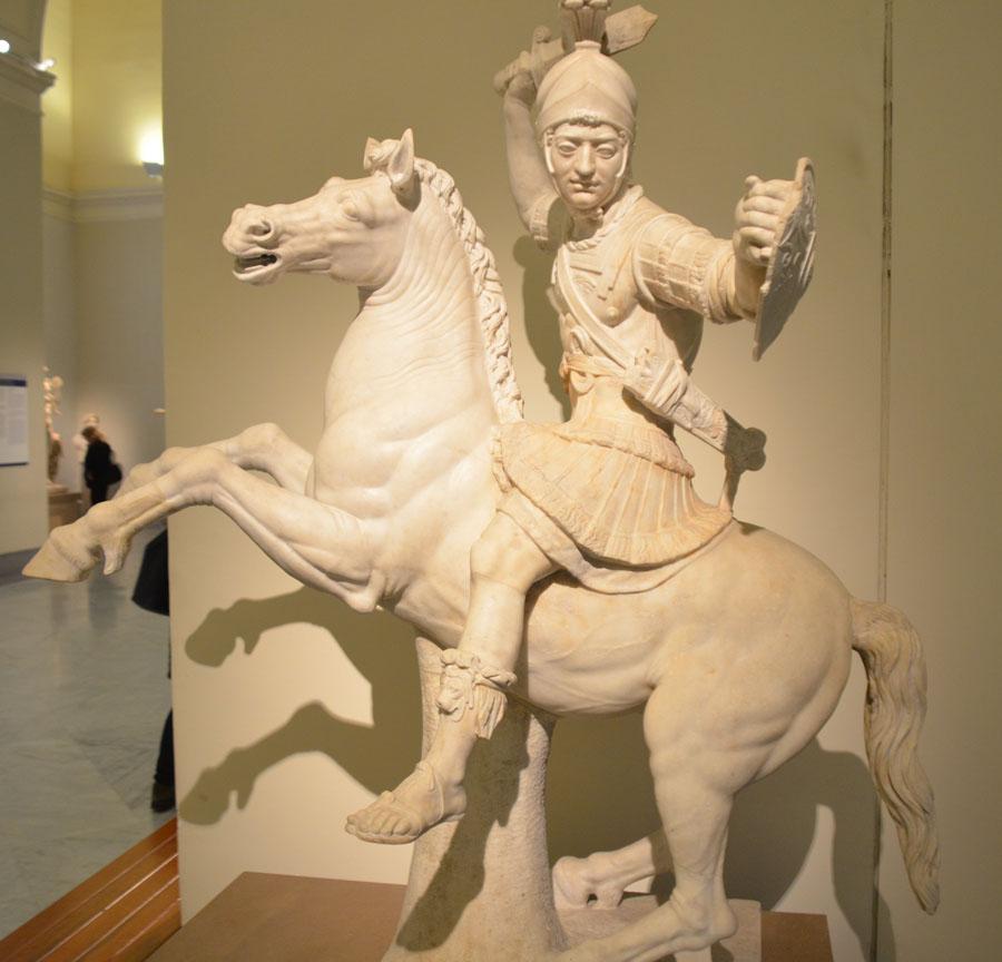 C’est de cette période que provient l’essentiel de la collection Farnèse, principalement des statues, qui occupe une grande partie du rez-de-chaussée. Et pour cause, la famille Farnèse, une des plus puissantes d’Italie à la Renaissance, obtint au XVIe siècle, le droit exclusif de mener des fouilles afin de décorer sa résidence romaine. Ce musée Farnèse, aujourd’hui le plus grand musée archéologique du monde (140.000 pièces au bas mot !) fut même conçu par Michel-Ange en personne. Cavalier romain, armes, boucliers, discoboles, déesse aux multiples mamelles, la collection est éblouissante et révèle le niveau artistique de la puissante Rome.