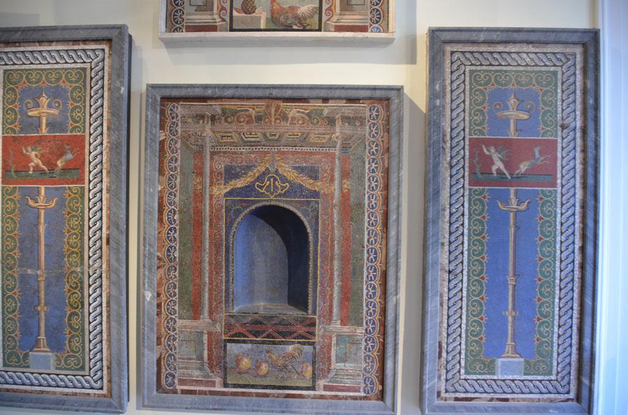 La collection des mosaïques (salles 57-64) est une des plus belles du monde (moins spectaculaire quand même que celle du Bardo, à Tunis). La plupart proviennent des anciennes villas romaines des environs de Naples, de Pompéi et Herculanum principalement. Musiciens ambulants, théâtre, faune, flore… La diversité des sujets et leur parfait état de conservation en font des œuvres uniques. Le jeu des couleurs et la perspective en font parfois de vraies peintures !