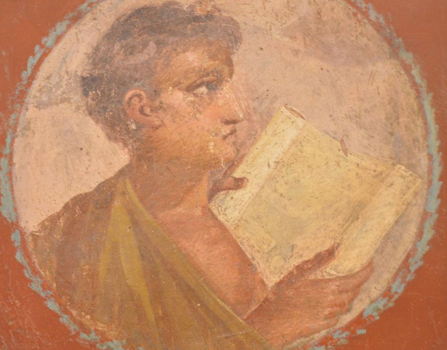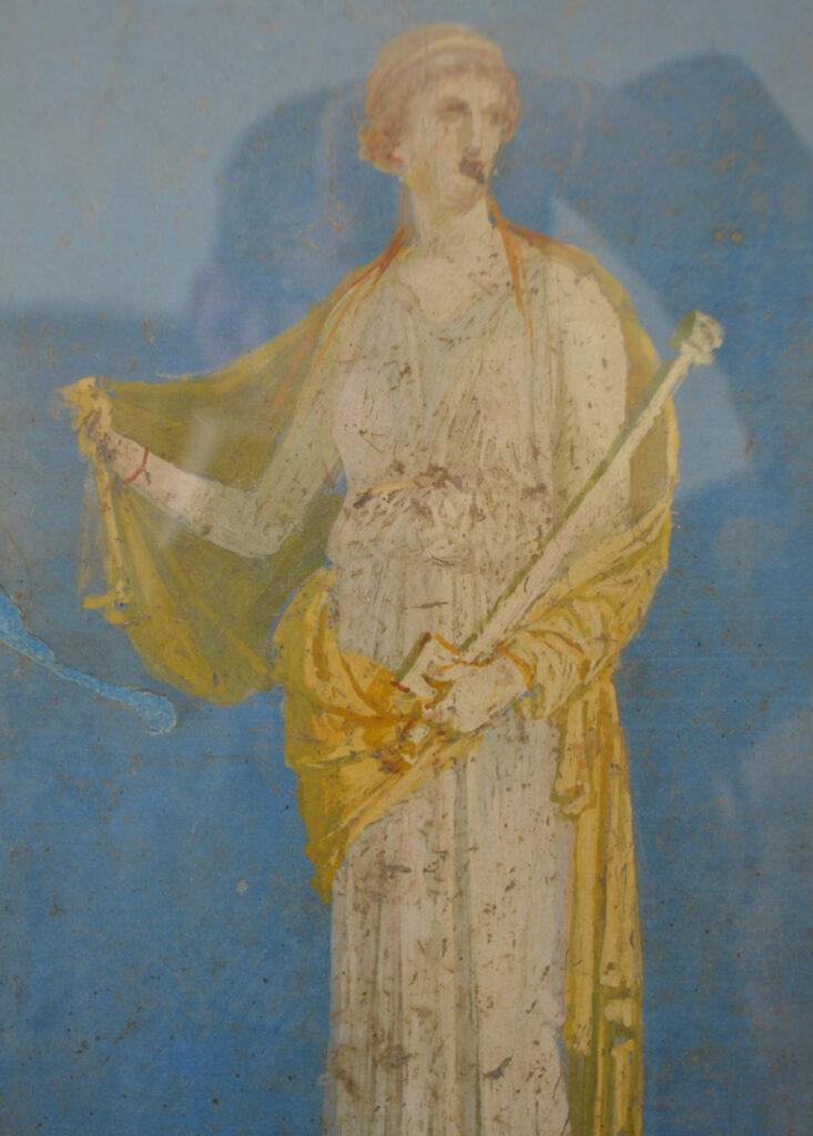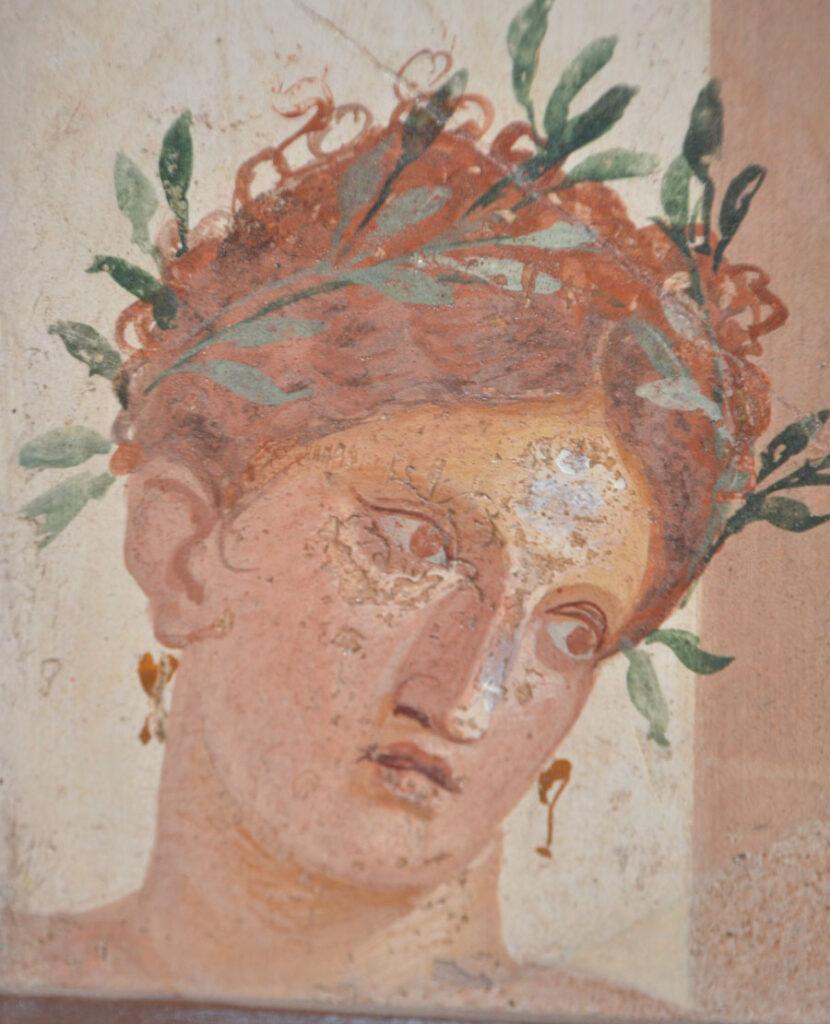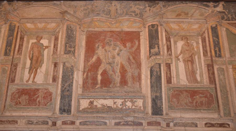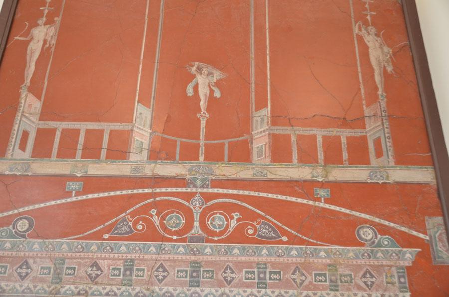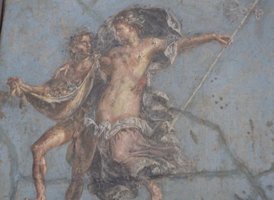 Enfin on achève la visite par les salles consacrées aux peintures et fresques retrouvées à Pompéi : les portraits de Tarentius Neo et de son épouse. La femme tient un stylet et une tablette. À ne pas manquer non plus Sapho, dans une peinture en médaillon, représentée dans une pause songeuse et lascive.