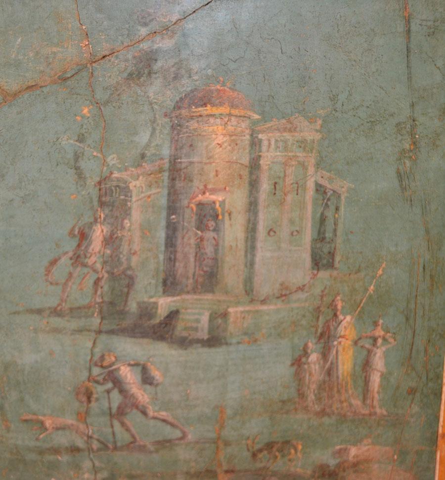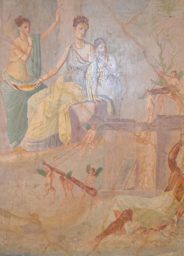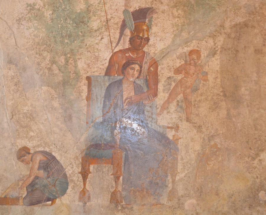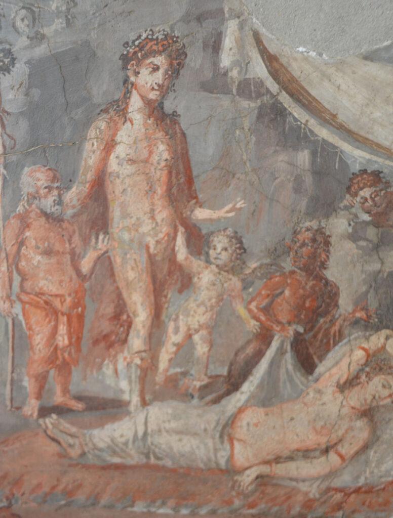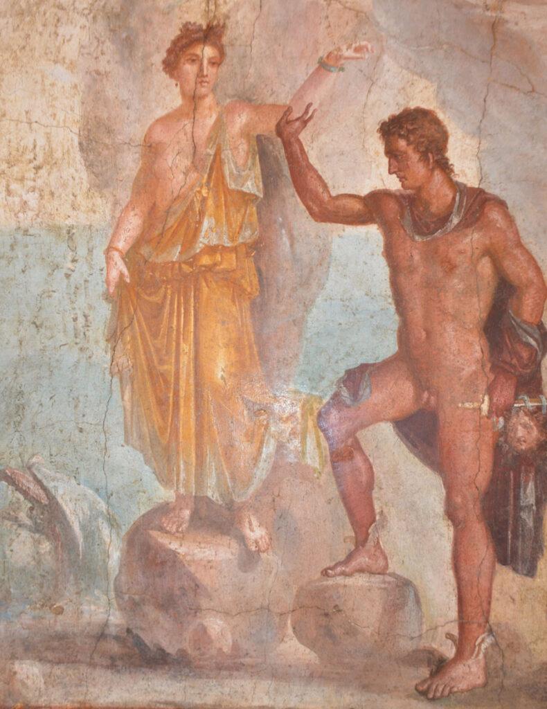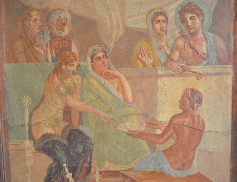 Enfin on achève la visite par les salles consacrées aux peintures et fresques retrouvées à Pompéi : les portraits de Tarentius Neo et de son épouse. La femme tient un stylet et une tablette. À ne pas manquer non plus Sapho, dans une peinture en médaillon, représentée dans une pause songeuse et lascive.