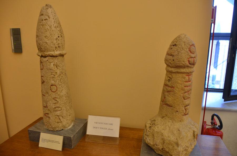 La salle la plus visitée du musée Farnèse est incontestablement le cabinet secret. Et pour cause, les œuvres exposées furent longtemps assimilées à « d’infâmes monuments de la licence aristocratique ». Traduisez au sexe. D’ailleurs, on l’appela aussi le « cabinet des objets obscènes ». Minuscule, le cabinet secret (il faut faire la queue pour y pénétrer) témoigne des habitudes et des mœurs des Romains au sujet de la symbolique très forte du phallus.