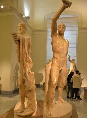 Parmi les pièces majeures de la première salle, à ne pas manquer le groupe des Tyrannoctones (IIe s.), les deux Athéniens qui moururent après avoir assassiné le tyran Hipparque. Ils symbolisent depuis le combat pour la liberté.