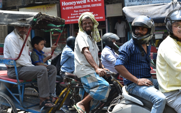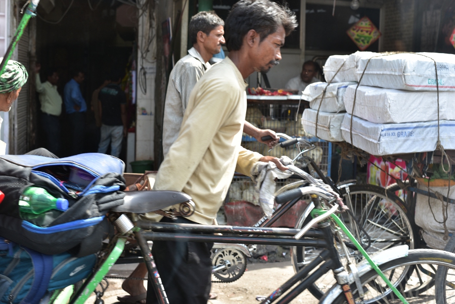 Jeudi 27 avril. À la sortie des murailles du Fort Rouge, Sonu est bel et bien là à m’attendre. C’est un soulagement de le voir. Il faut que j’arrête de « psychoter » ! Bon, ok, en sortant du quartier du Red Fort, je ne peux résister à l’envie de me plonger dans la « vraie vie » hindoue. Et pour ça, rien de mieux qu’une plongée au cœur du grand bazar de Old Delhi : Chandni Chowk.