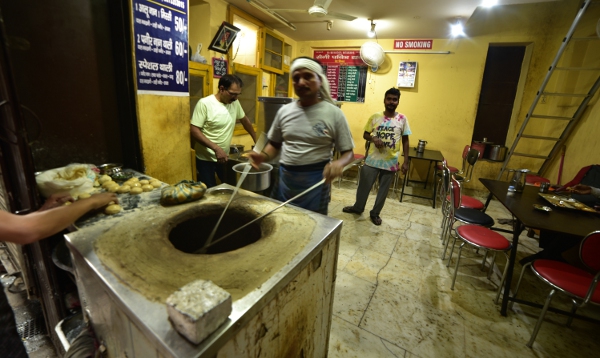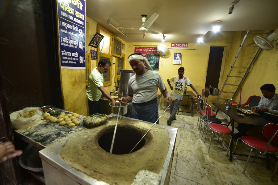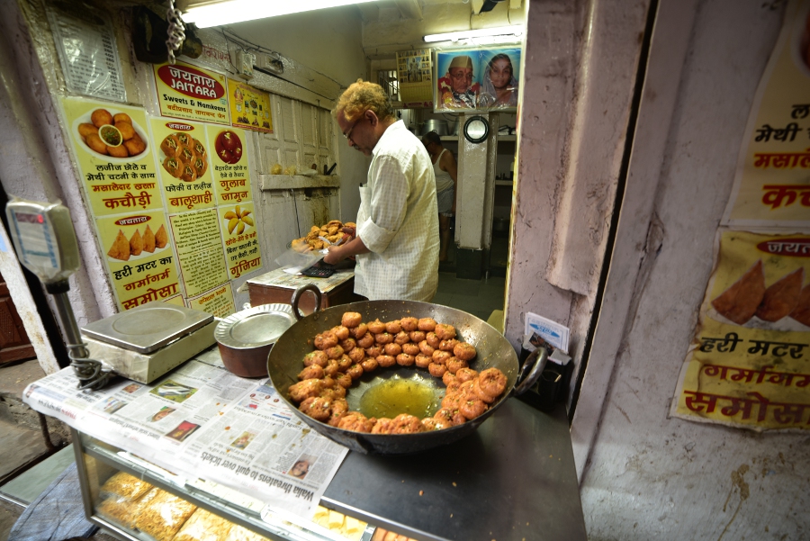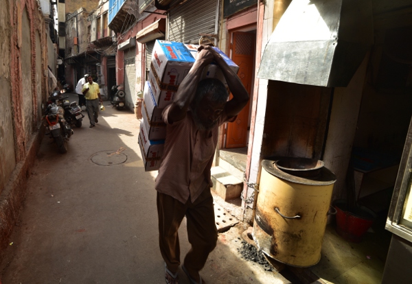 Sonu m’emmène dans des ruelles si étroites qu’un seul homme peut s’y faufiler. Des gargotes surgissent entre deux pans de murs. Des cuisiniers de rues préparent des plats traditionnels. De quoi remplir le ventre des hommes surchargés de sacs trop lourds.