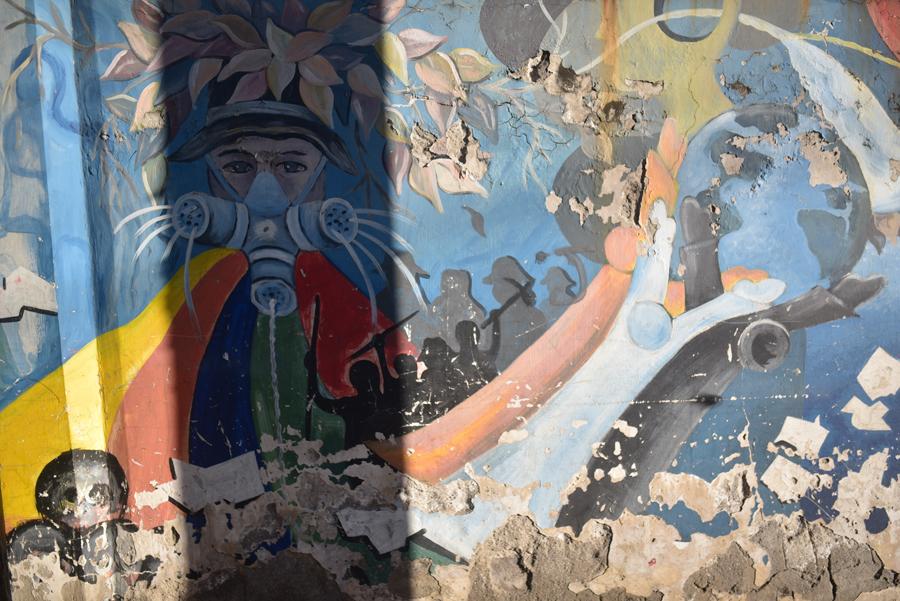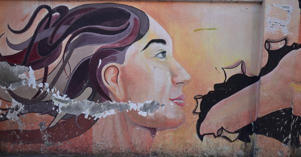 Léa a décidé de se reposer et de dormir un peu. En même temps, je la comprends avec ces heures de bus que nous avons additionnées. Mais bon, je m’extirpe tant bien que mal du lit, une douche rapide, et je file au-dehors. J’ai une petite heure pour visiter la ville. Eh oui, on doit encore prendre le bus de bon matin si on veut rattraper le retard pris en demeurant un jour de plus sur la côte Pacifique. Dommage pour Léa, de jolies fresques de street art m’accueillent dès la sortie de l’hôtel.