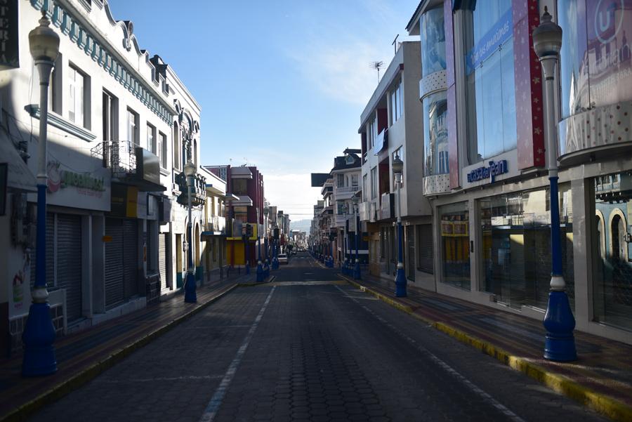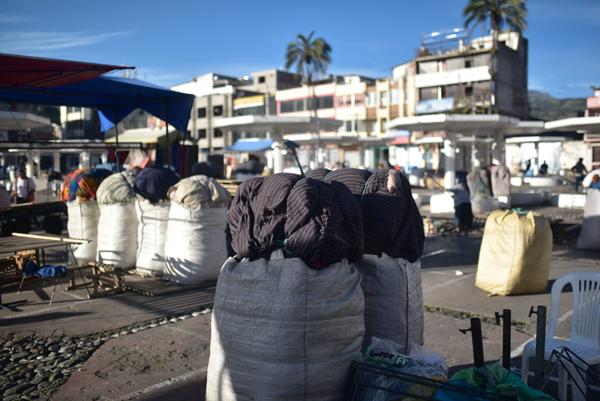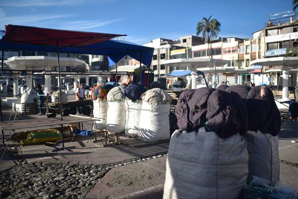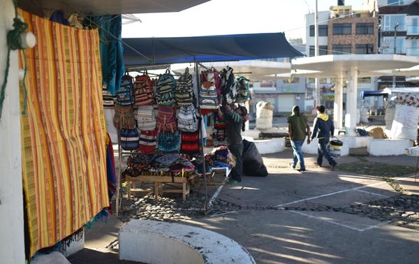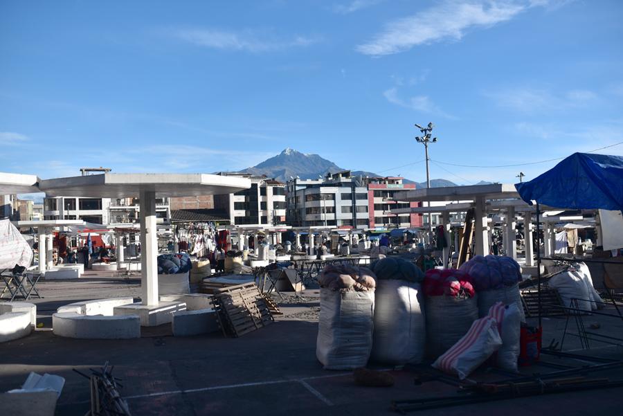Enfin, voici le fameux marché d’Otavalo. Mais à cette heure-ci, il n’y a pas âme qui vive, seulement les commerçants qui achalandent leur stand.
