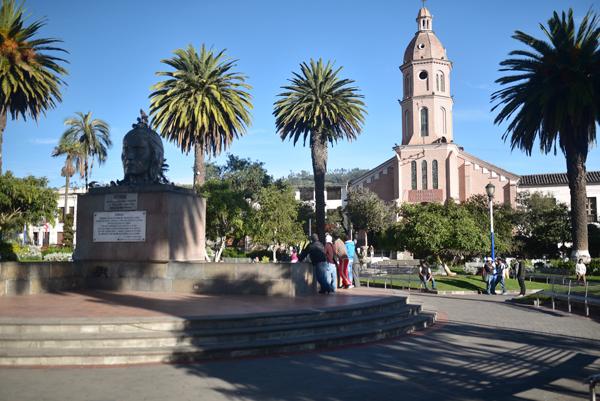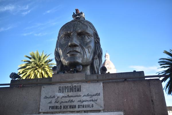 Au centre de la place, se dresse une statue de Ruminahui, le général de l’Inca Atahualpa, symbole de l’opposition indienne aux conquistadors espagnols.