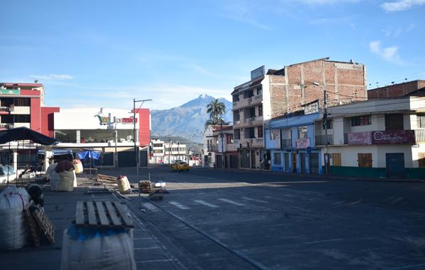 Je laisse un moment la place derrière moi pour emprunter l’avenue qui la prolonge, en direction de la sortie de la ville. De là, on aperçoit mieux le volcan. En fait, ils sont deux : Mama Cotacachi et Taita Imbabura, représentant respectivement la mère et le père protecteurs pour les Indiens.