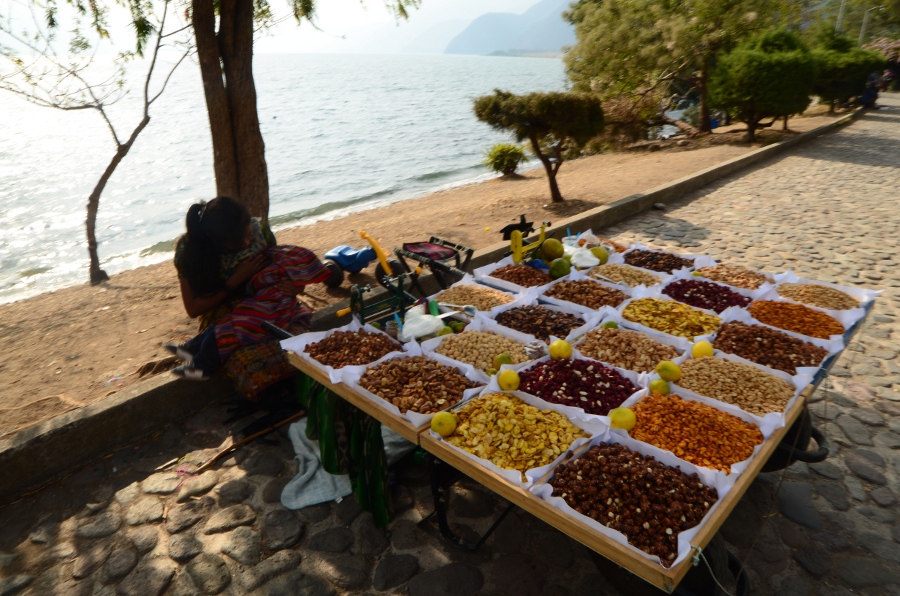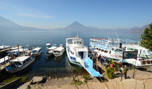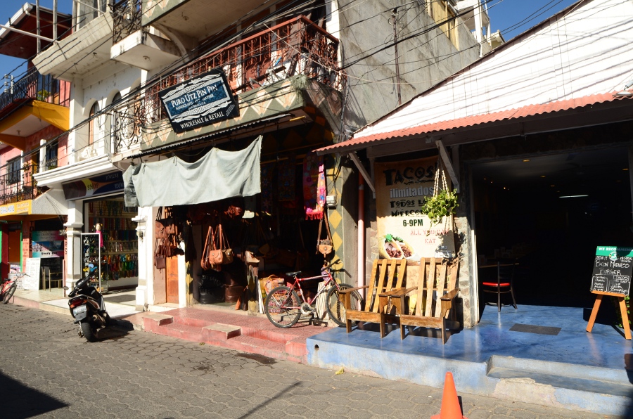 À mon arrivée, notre guide pour la journée nous offre un sympathique petit-déjeuner que je prends avec mes nouveaux amis Costaricains, un couple et son petit, qui n’auront de cesse de me vanter les beautés naturelles du Costa-Rica. C’est clair, ça fait rêver ! C’est donc avec le ventre plein (quel délice !) que nous descendons la rue principale de Panajachel (succession de boutiques et de petits restaurants) pour nous diriger vers le port. À la belle époque, le village n’abritait que peu de touristes, des hippies qui se mêlaient plutôt bien à la population locale. Les temps ont un peu changé, mais ce n’est quand même pas la grande foule.