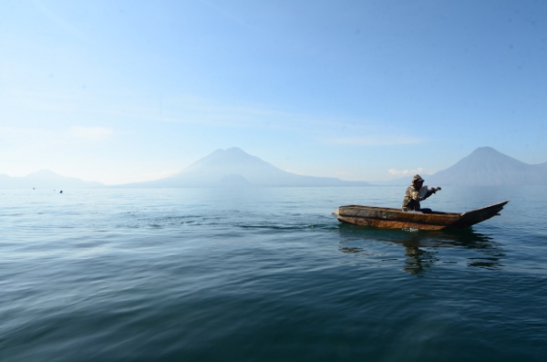 Des bateaux de pêcheurs croisent la route des bateaux de touristes. La côte s’éloigne, les flancs du volcan Atitlan prennent toute leur mesure.