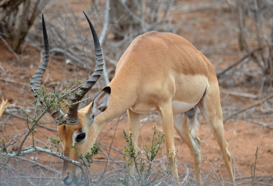 Parmi les 150 espèces de mammifères, impossible de passer à côté des nombreuses gazelles qui peuplent le parc. Et ça commence plutôt en fanfare avec cet incroyable impala. Un mâle dominant à coup sûr avec son manteau fauve, ses cornes en forme de lyre, son cou élancé et ses grandes oreilles.