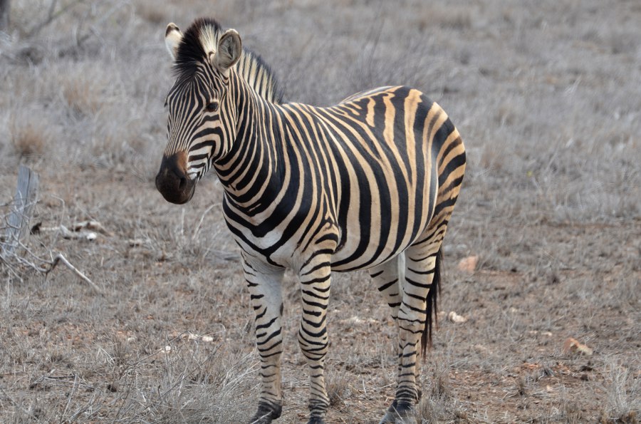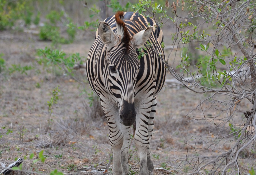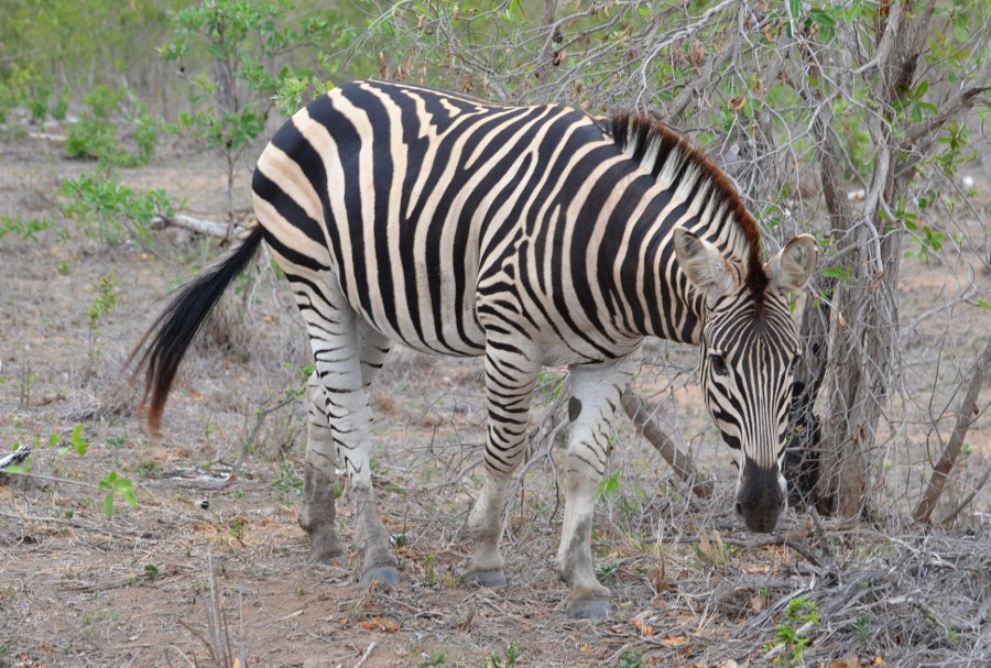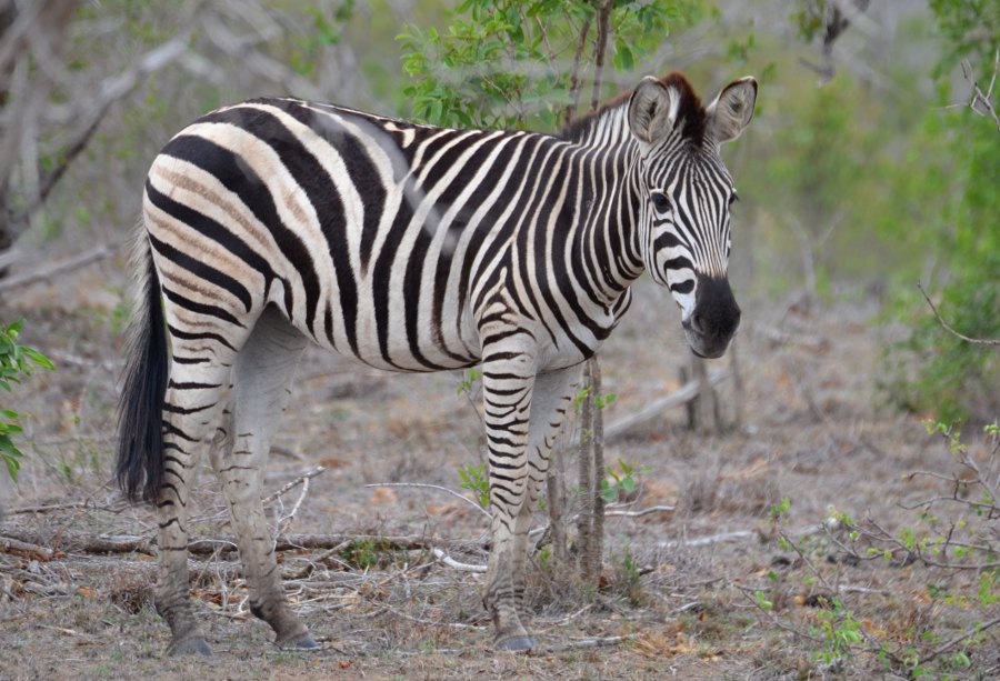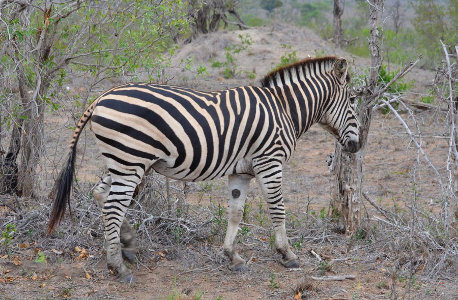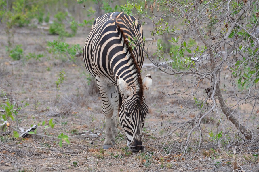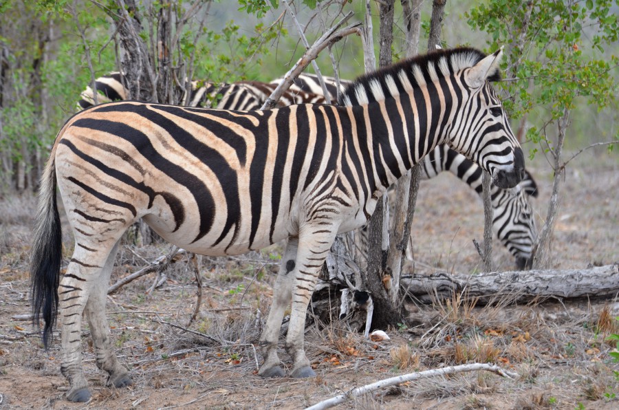La beauté des zèbres, leur grâce inouïe, leur élégance me laissent sans voix. Quel spectacle étonnant. Ils vont et viennent à travers le parc par petits groupes d’une quinzaine de membres. Un mâle dominant règne sur un harem de cinq à six juments avec leurs poulains. Sa robe bicolore est d’une beauté incroyable. Ici, en Afrique du Sud, on ne peut voir que le zèbre de Grant, reconnaissable à ses zébrures larges.