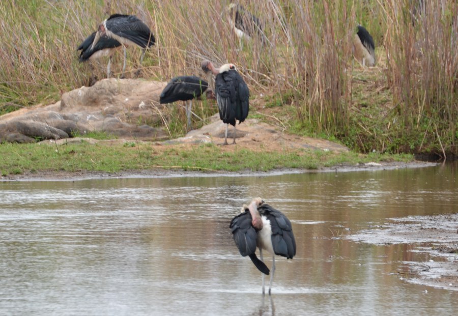 Sur notre chemin, nous allons croiser également quelques dizaines de spécimens d’oiseaux. En fait, il en existe plus de 500 variétés sur l’ensemble du parc Kruger. Si nous ne verrons que peu d’autruches, nous aurons surtout la chance d’admirer au passage des vautours et d’extraordinaires marabouts. Ces derniers ne sont en fait rien d’autre que de grosses cigognes chauves qui peuvent atteindre une envergure de 2,50 m.