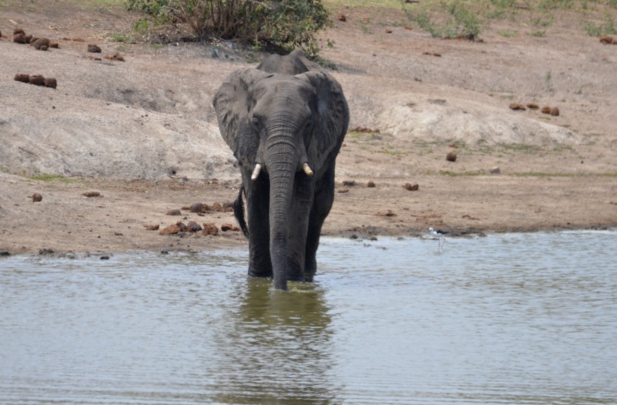 Et quand je dis deux pas, c’est vraiment deux pas… Les hardes d’éléphants sauvages sont au bas du remblai qui protège le camp. Ils migrent en groupe le long du lit de la rivière asséchée.