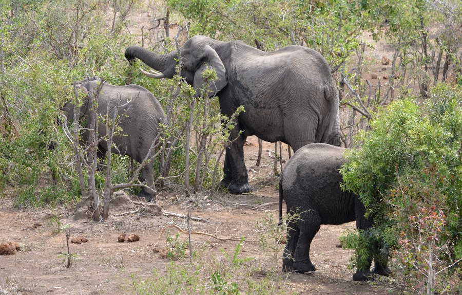 En s’enfonçant plus en avant dans le parc, après Skukuza, et en empruntant la route de Lower Sabie, nous en verrons encore des centaines. Et pour cause… Le parc souffre aujourd’hui de la surpopulation d’éléphants. Leur protection a tellement été défendue (et par des mercenaires en armes !) que leur nombre double tous les dix ans. Une exception dans toute l’Afrique.