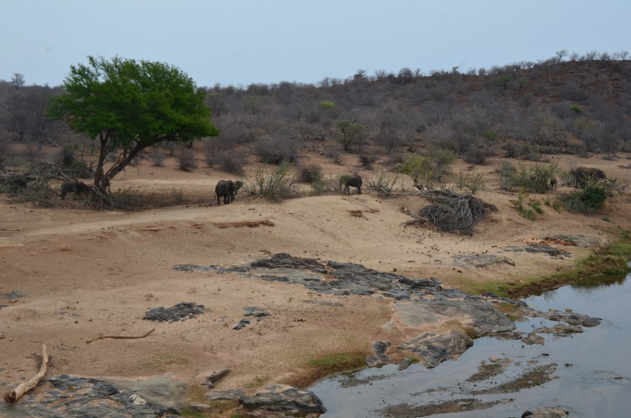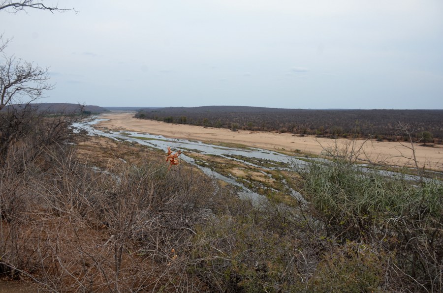 À l’est de Tshokwane, le barrage d’Orpen est un merveilleux point d’observation pour les grands animaux. On peut même sortir de voiture. De là, on peut observer à loisir, gnous, éléphants et rhinocéros blancs (on n’en verra pas…). Dans l’eau, se cachent les crocodiles qui guettent leurs proies immobiles… Le paysage est sublime.