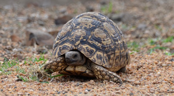 Petit clin d’œil avant de passer aux grands animaux… La Tortue à soc d’Afrique du Sud arpente allègrement les chemins sans se soucier du monde qui l’entoure.