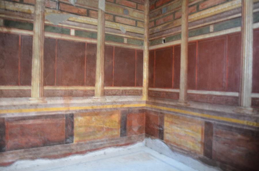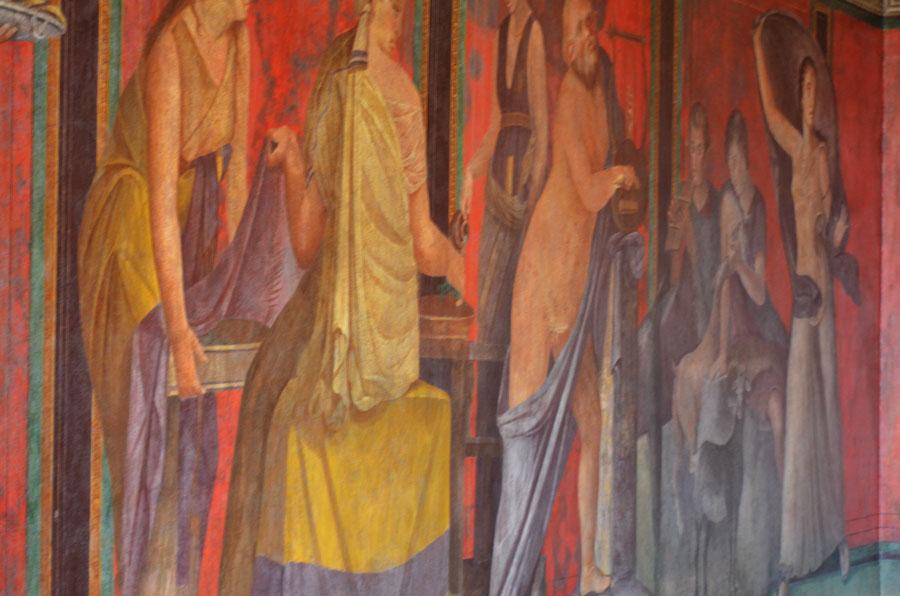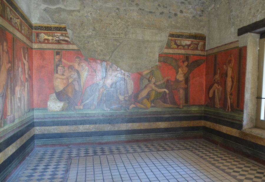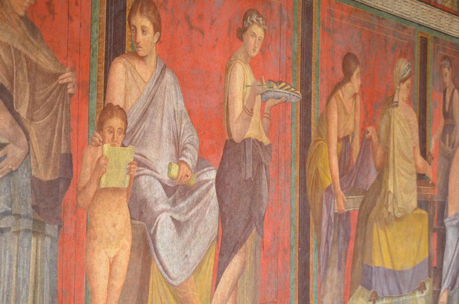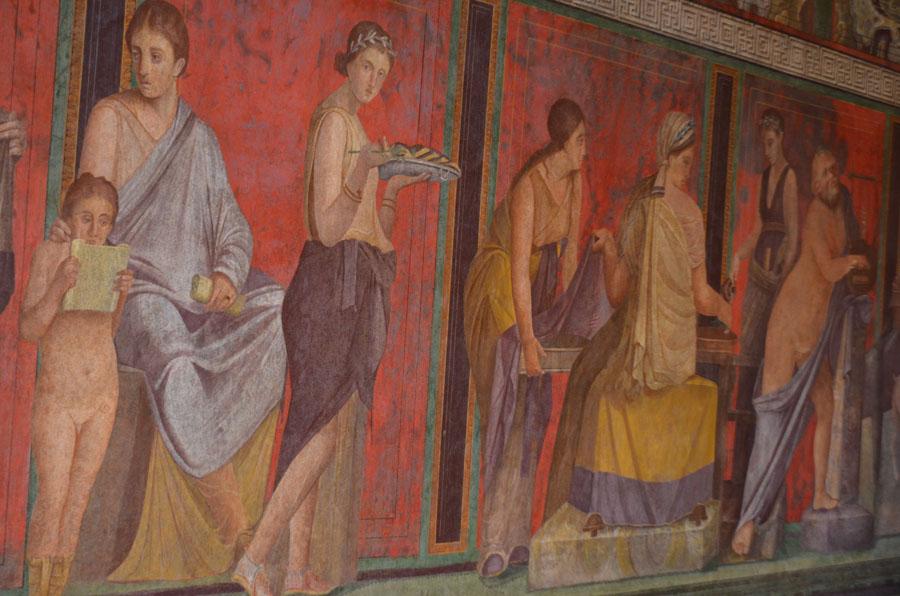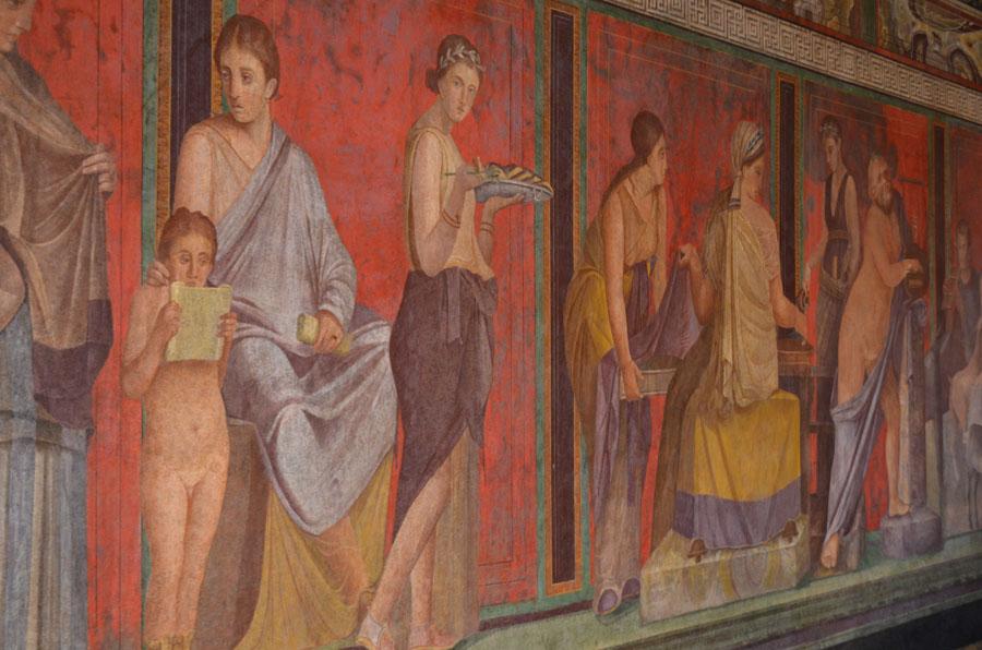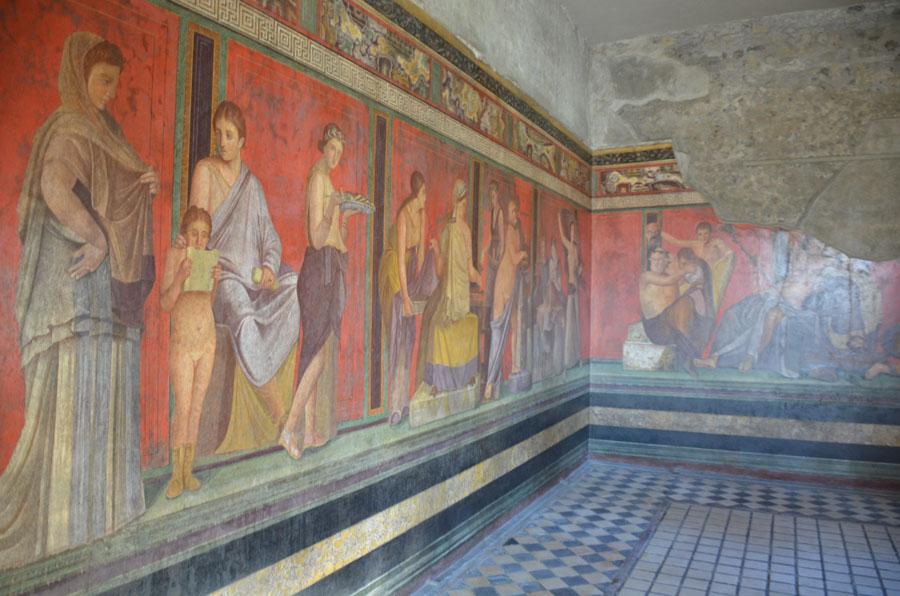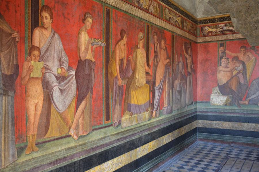 La villa dei Misteri*** comprenait plusieurs dépendances et servitudes. Elle comprenait aussi une exploitation agricole, ce qui explique sa localisation à l’extérieur des murs de la cité antique. Bordés de patios et de jardins intérieurs, la villa regorge encore de pièces où se nichent des fresques encore intactes. 20 siècles sont passés et les couleurs sont encore fraîches.