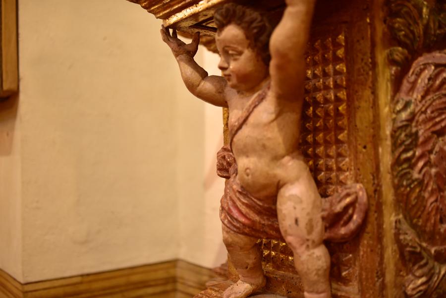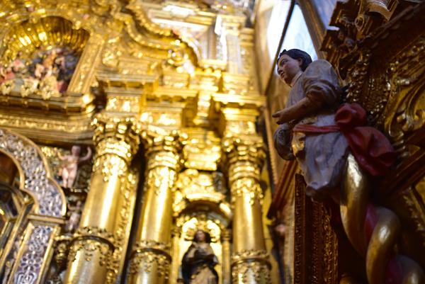 L’intérieur est un éblouissant mélange d’art cumulé du mudéjar et du baroque. L’ornementation débridée mêle dorures à gogo, chérubins et motifs géométriques d’une finesse évoquant les broderies des vêtements sacerdotaux.