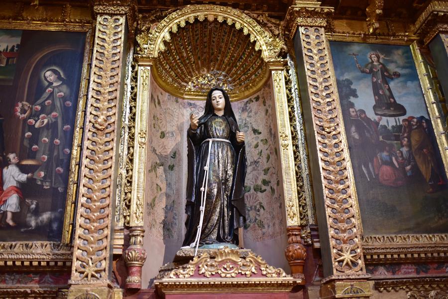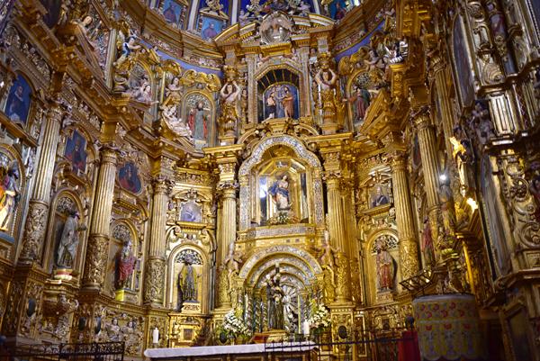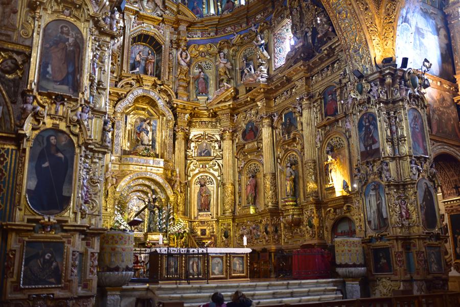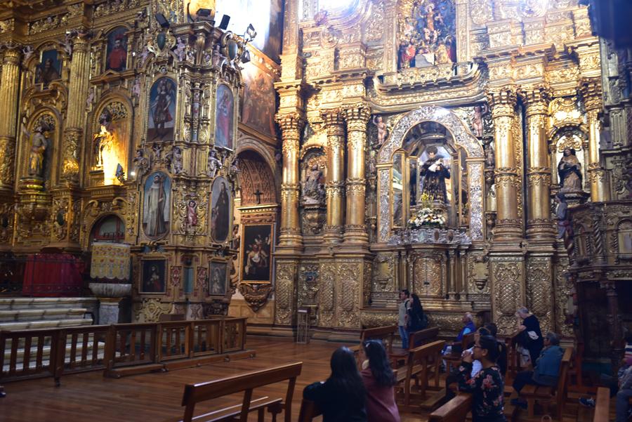 L’autel principal comporte l’original de la Virgen de Quito de Legarda, une sculpture d’une Vierge ailée. Cette représentation est unique sur le continent.