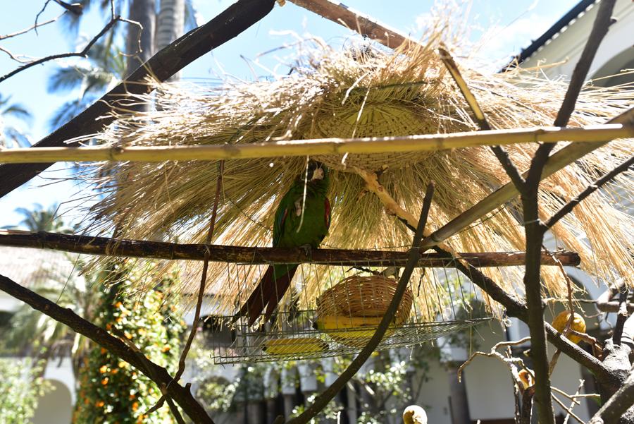 À l’entrée du monastère, on est attiré par des cris d’oiseaux. En s’approchant de plus près, on s’aperçoit qu’une volière a été aménagée pour abriter de magnifiques perroquets.