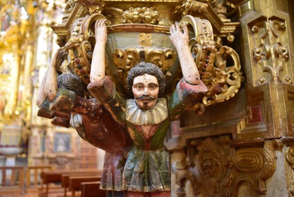 Mais le plus beau reste à voir avec la chair et le maître-autel. La chair, sculptée et dorée, est soutenue par plusieurs personnages. Magnifique.