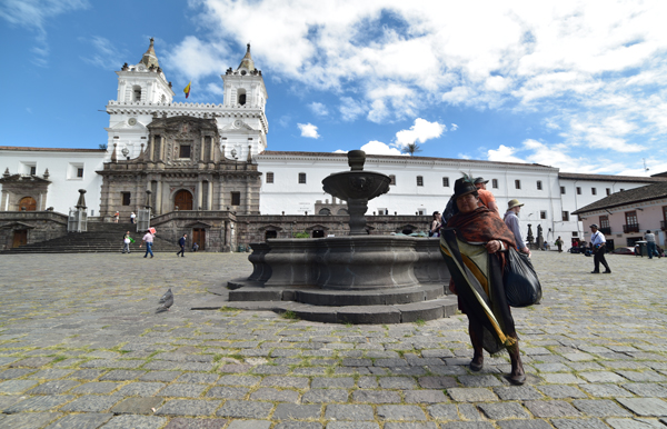 Autant le dire tout de suite, il s’agit vraiment de la plus belle place de Quito. Pavée et piétonne, elle est bordée de maisons coloniales. Quant au fameux monastère San Francisco, il se dresse probablement à l’emplacement même de l’ancien palais de l’Inca Atahualpa. De quoi justifier aujourd’hui la présence de nombreux Indiens descendants des Incas et des premiers Quitus.
